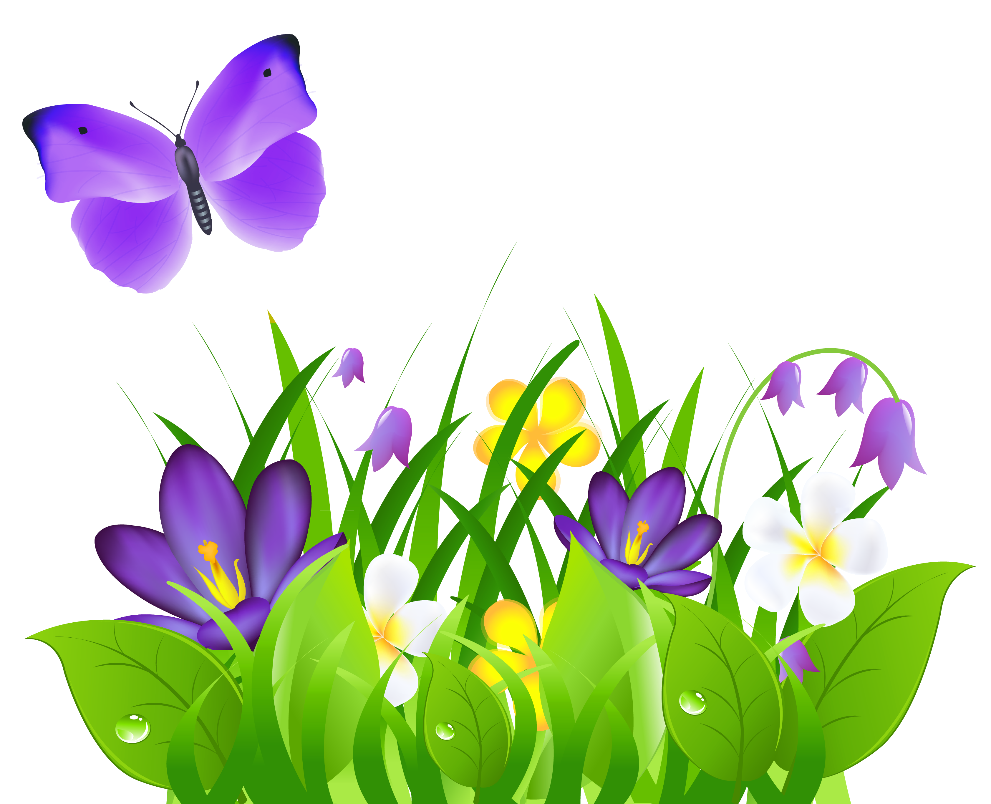 This Clipart Image: "Purple Flowers Grass and Butterfly PNG Clipart Picture" is part of