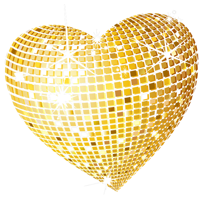 This Clipart Image: "Gold Disco Heart PNG Clipart Picture" is part of