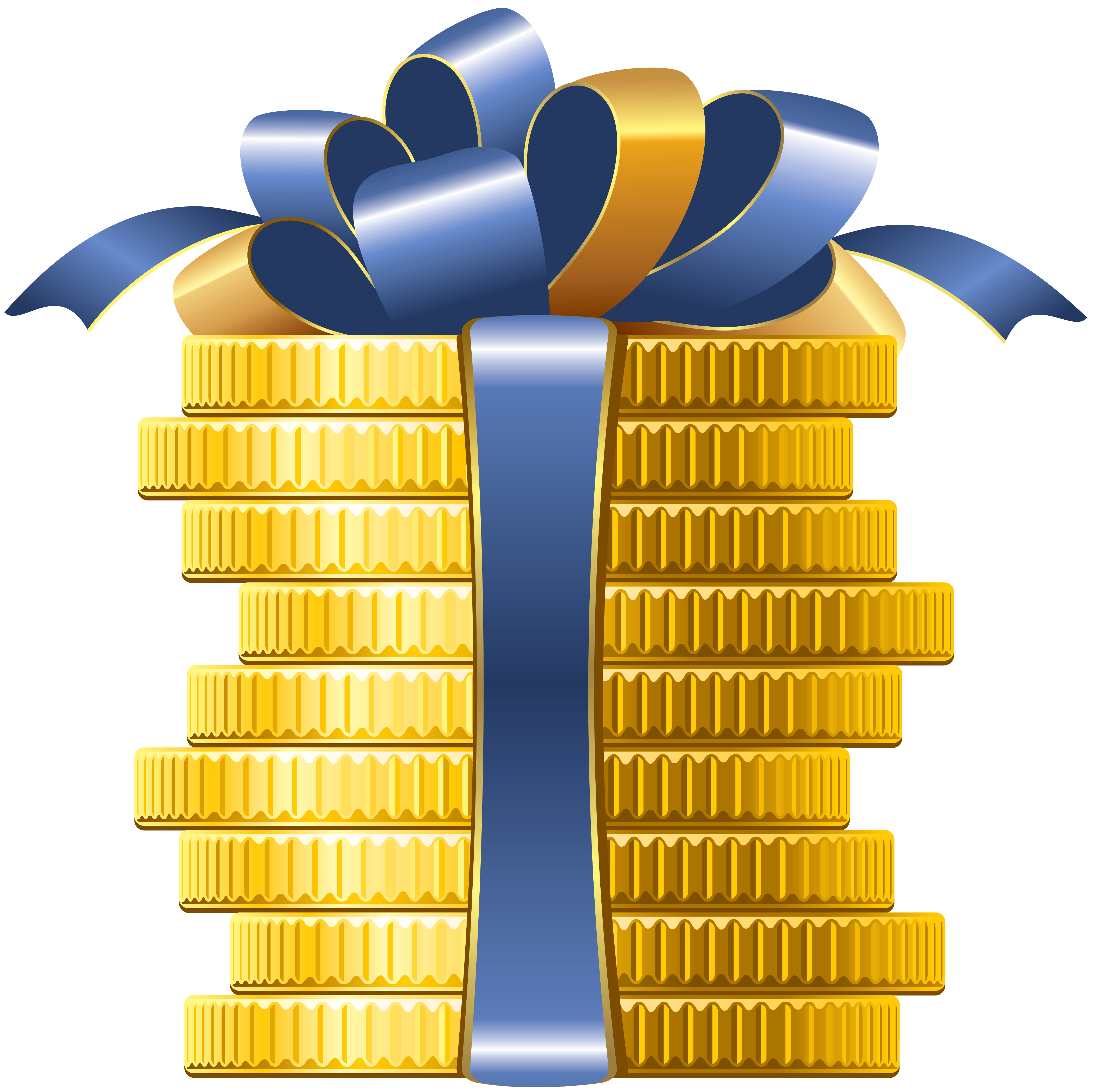 This Clipart Image: "Coins with Bow PNG Clipart" is part of
