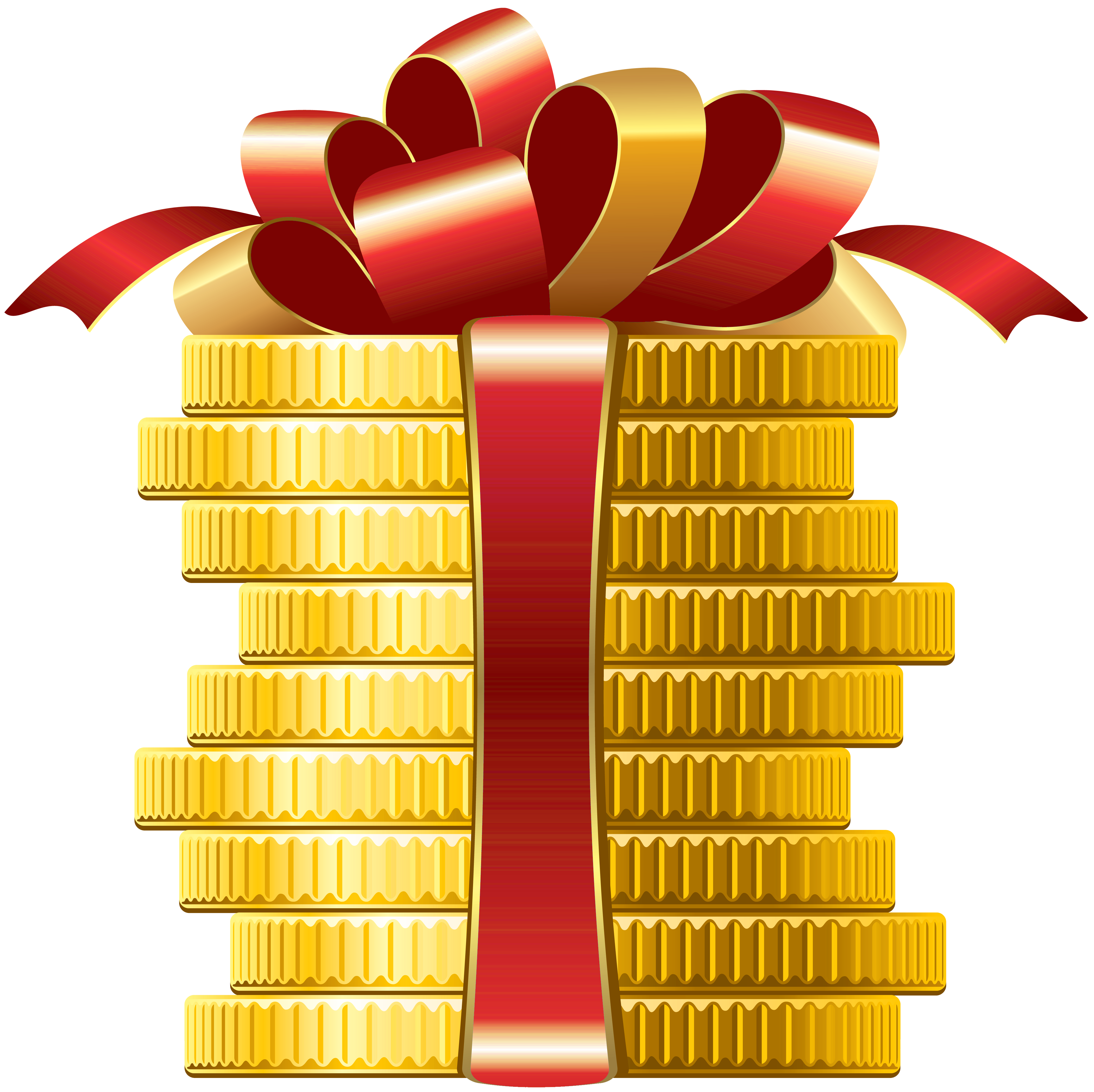 This Clipart Image: "Coins with Red Bow PNG Clipart" is part of