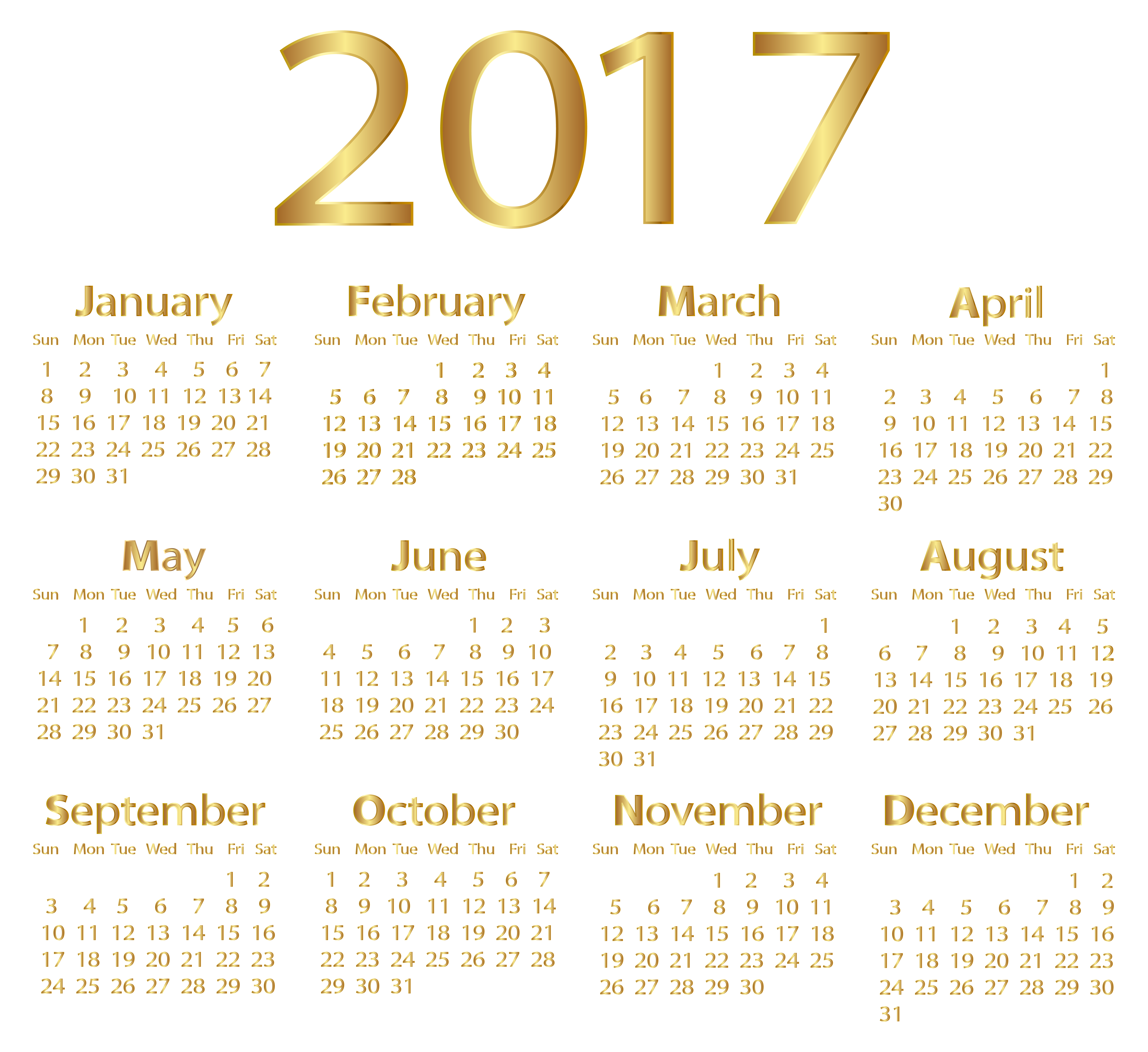 This Clipart Image: "2017 Gold Calendar PNG Transparent Clip Art Image" is part of