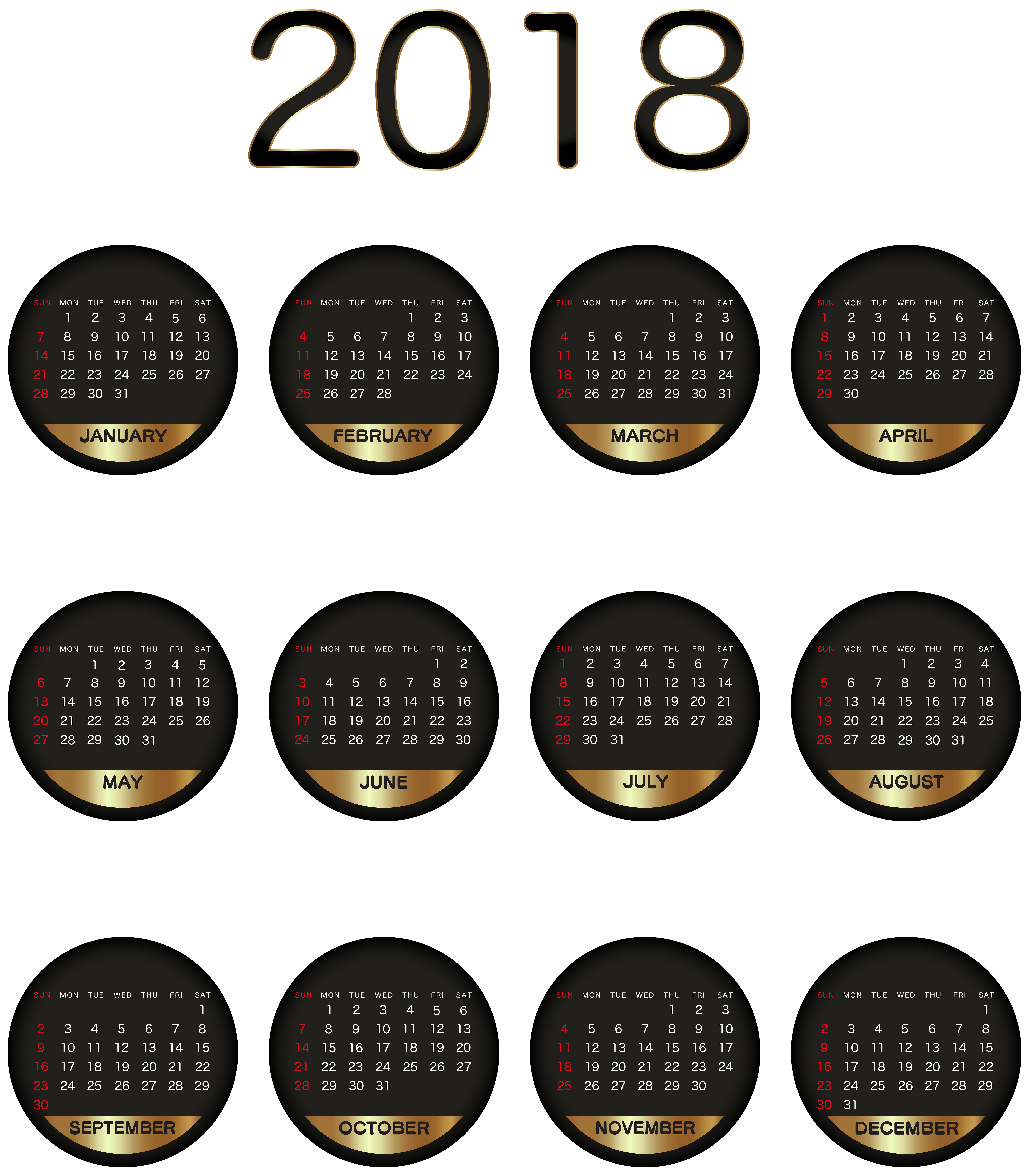 This Image: "2018 Calendar Black Gold Transparent PNG Image" is part of