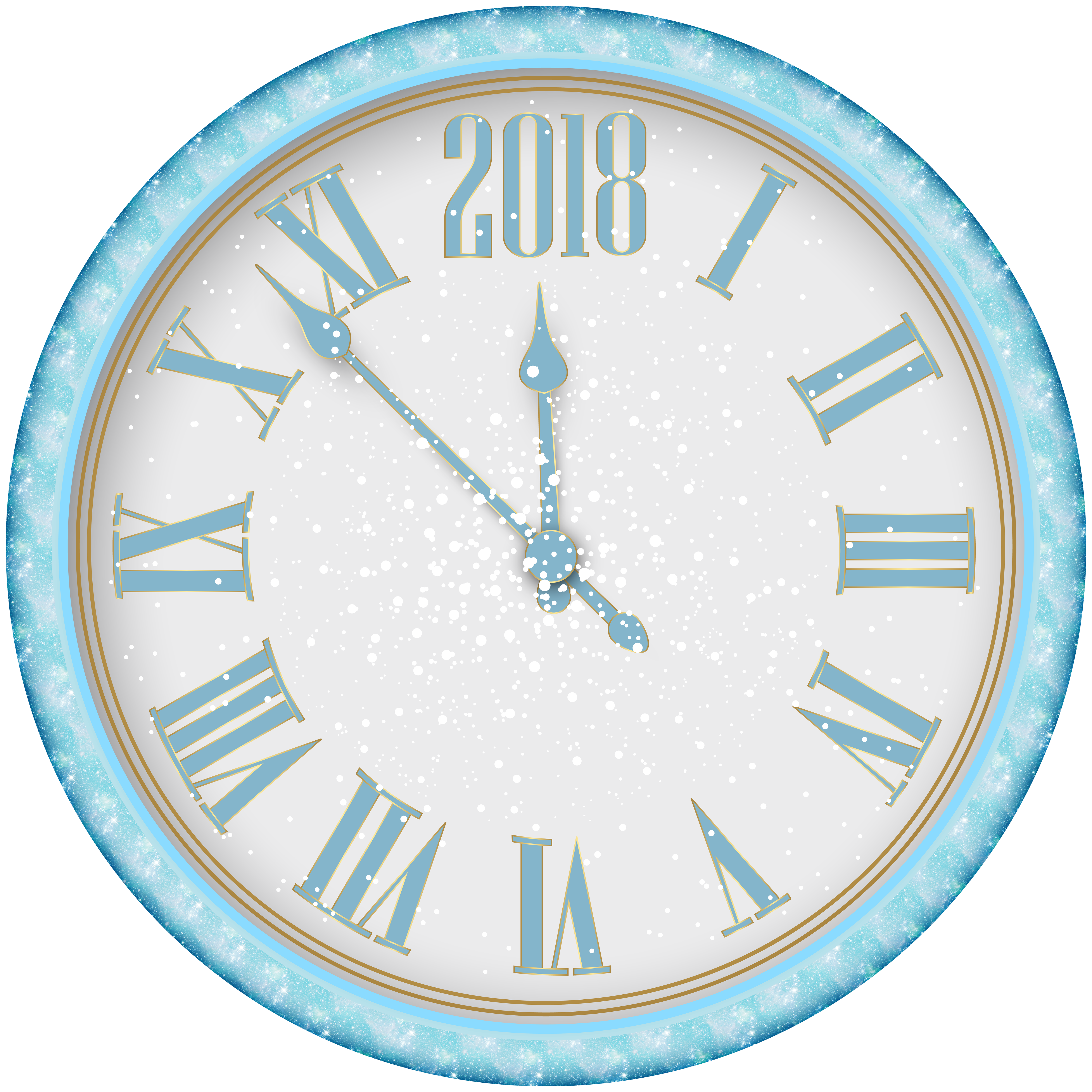 This Clipart Image: "2018 New Year Snowy Clock PNG Clip Art" is part of