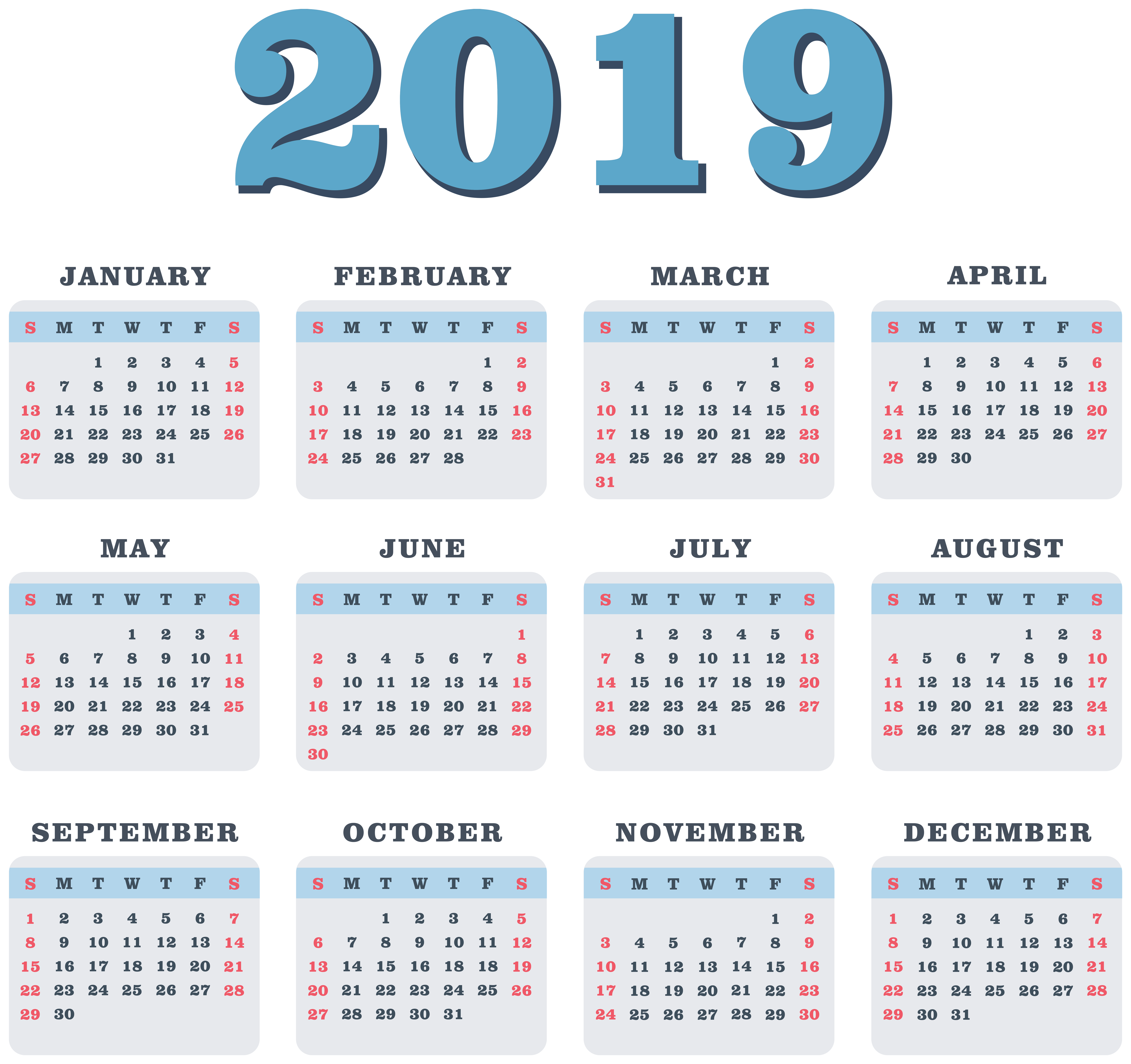 This Image: "2019 Blue Calendar Transparent PNG Image" is part of