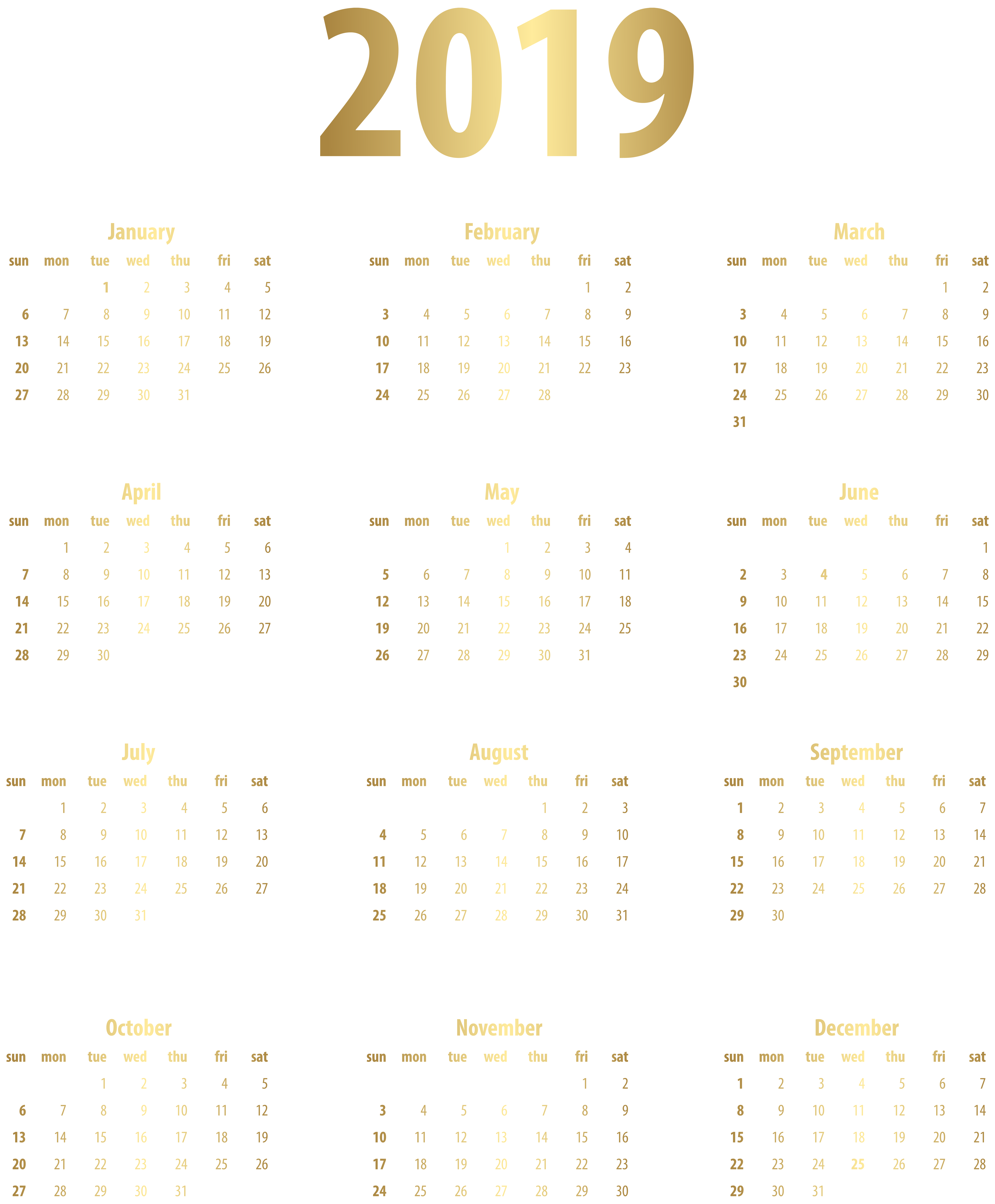 This Image: "2019 Calendar Gold Transparent PNG Image" is part of