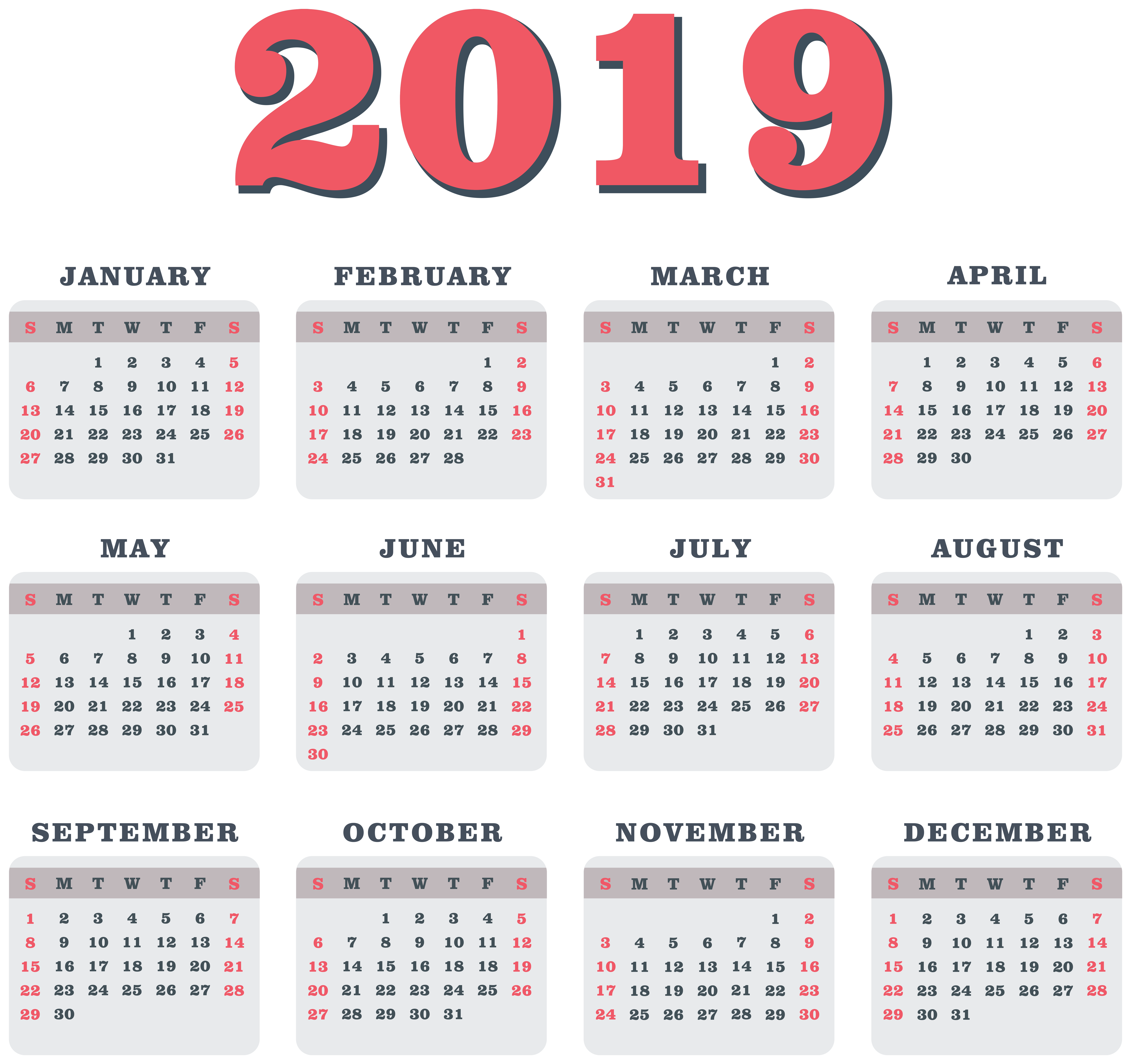This Image: "2019 Calendar Red Transparent PNG Image" is part of