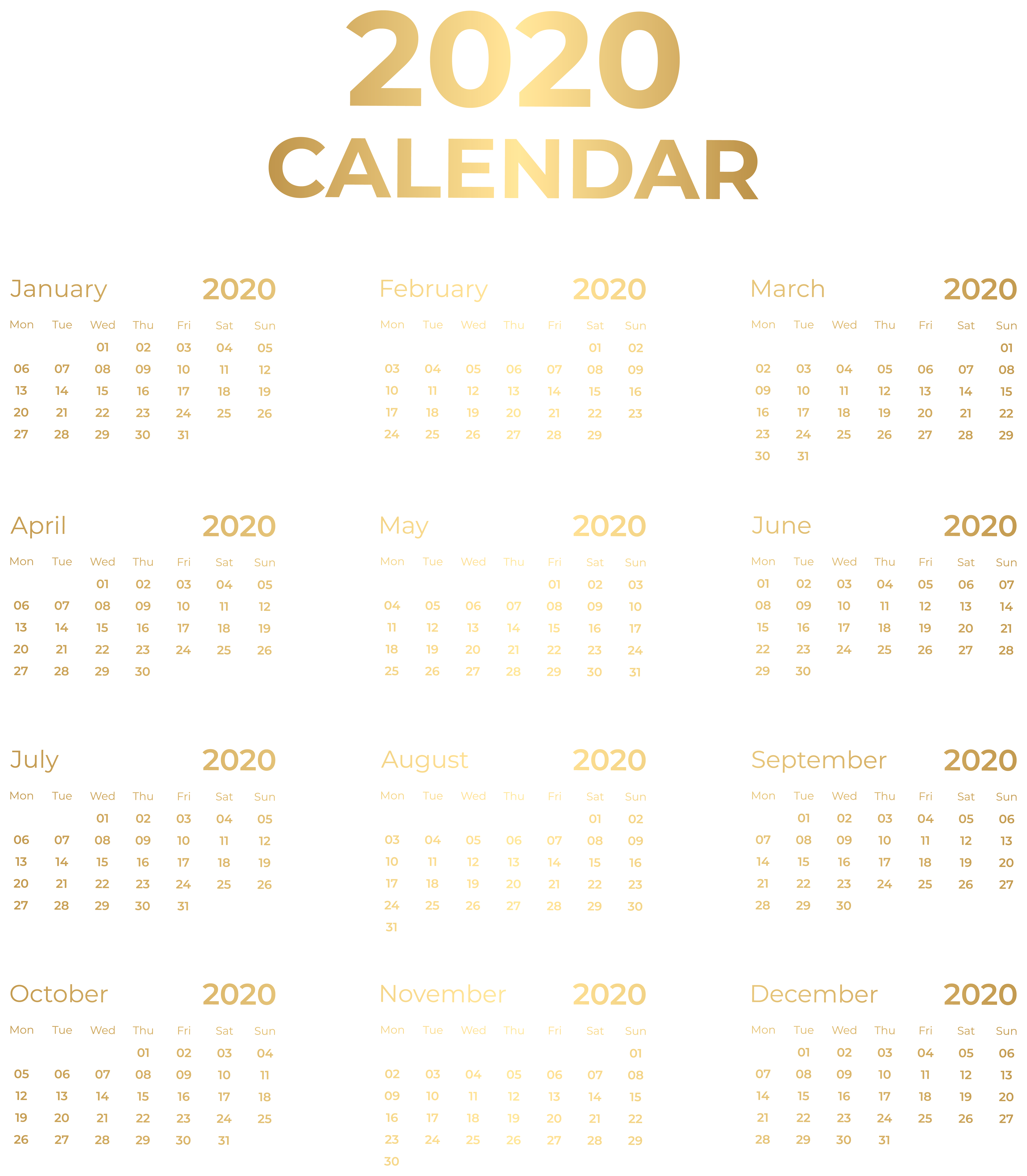 This Clipart Image: "2020 Gold Calendar PNG Clipart" is part of
