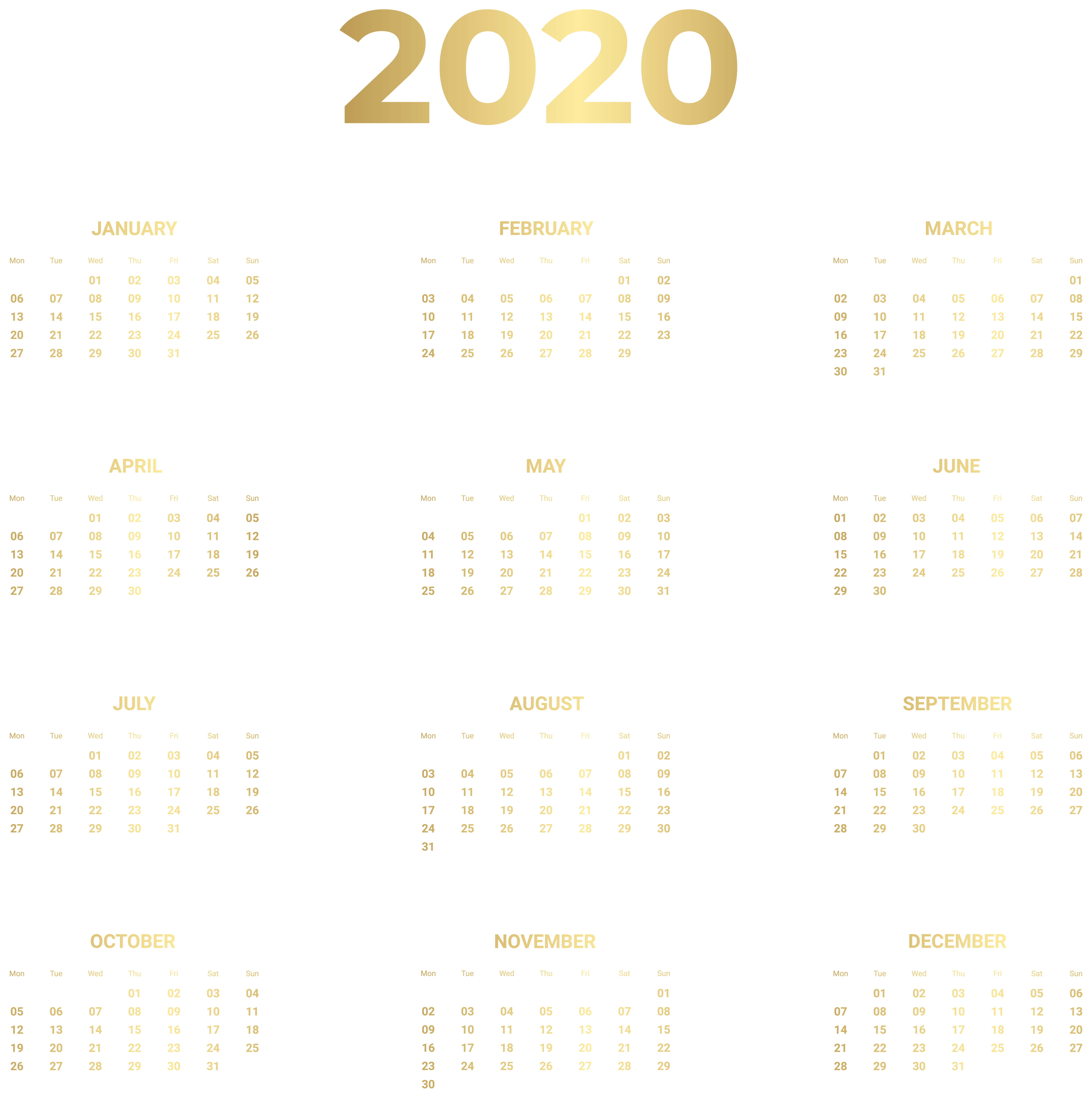 This Clipart Image: "2020 Gold Calendar Transparent Clipart" is part of