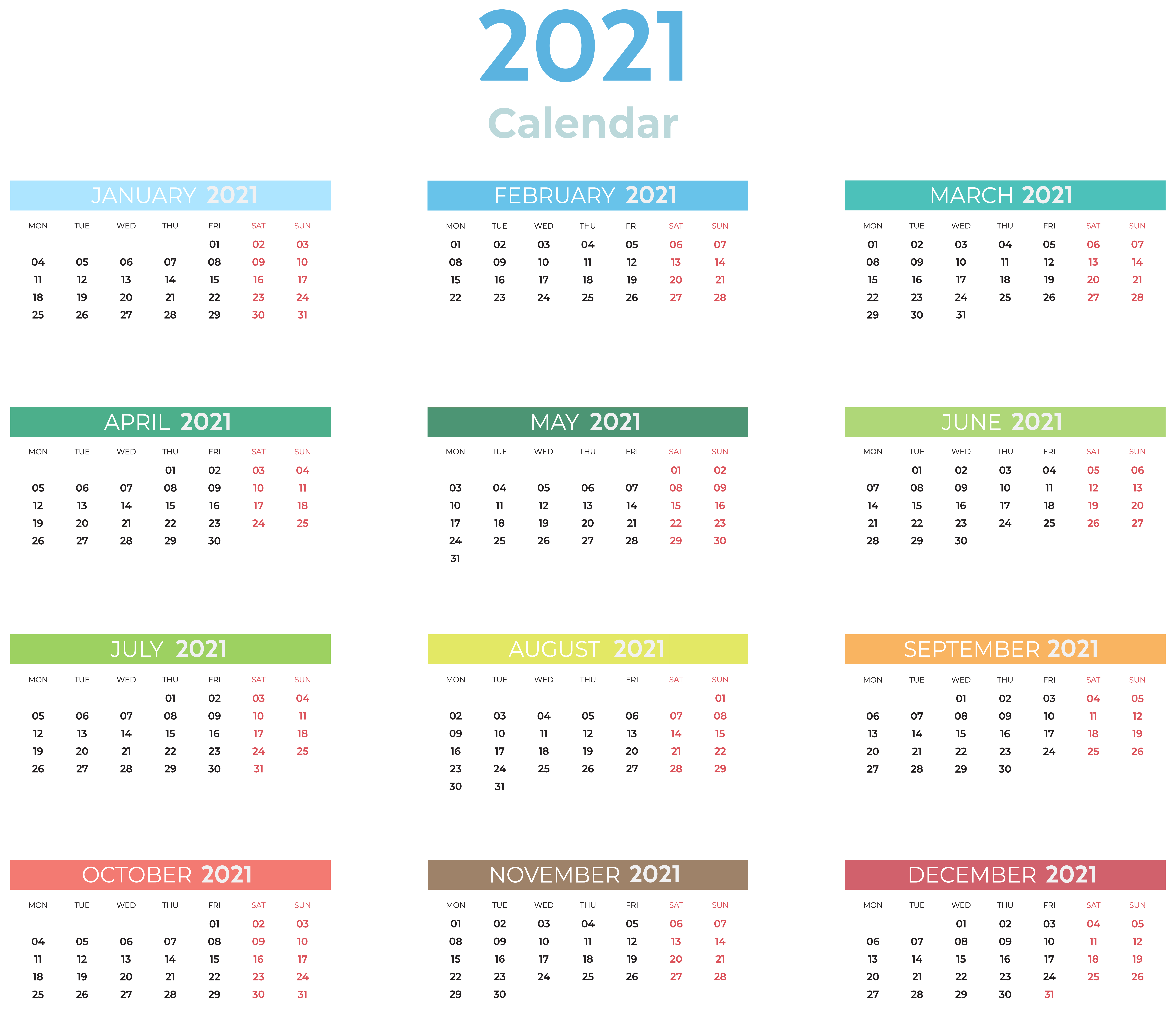 This Clipart Image: "2021 Color Calendar Transparent Clipart" is part of