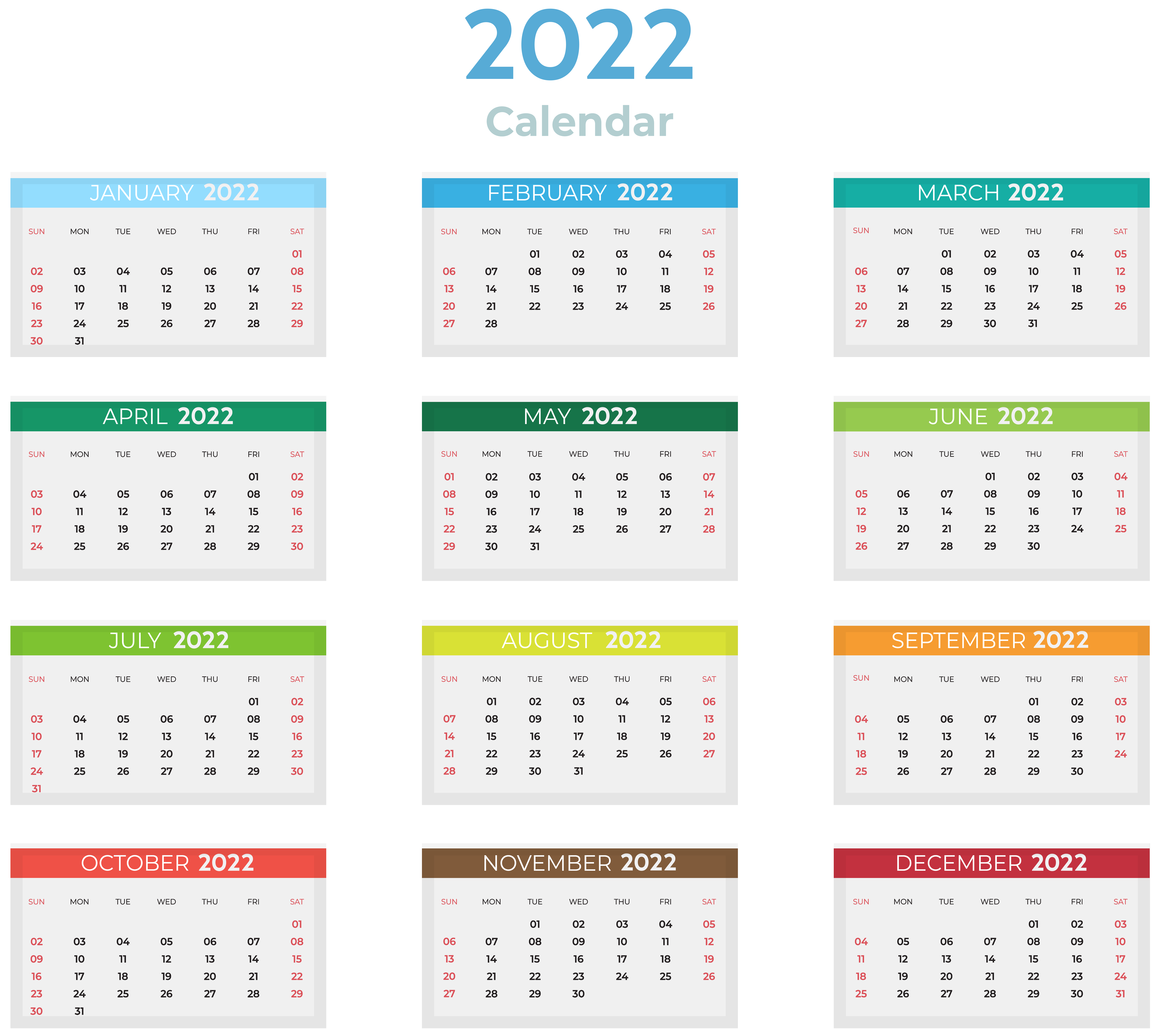 This Clipart Image: "2022 US Color Calendar Clipart" is part of