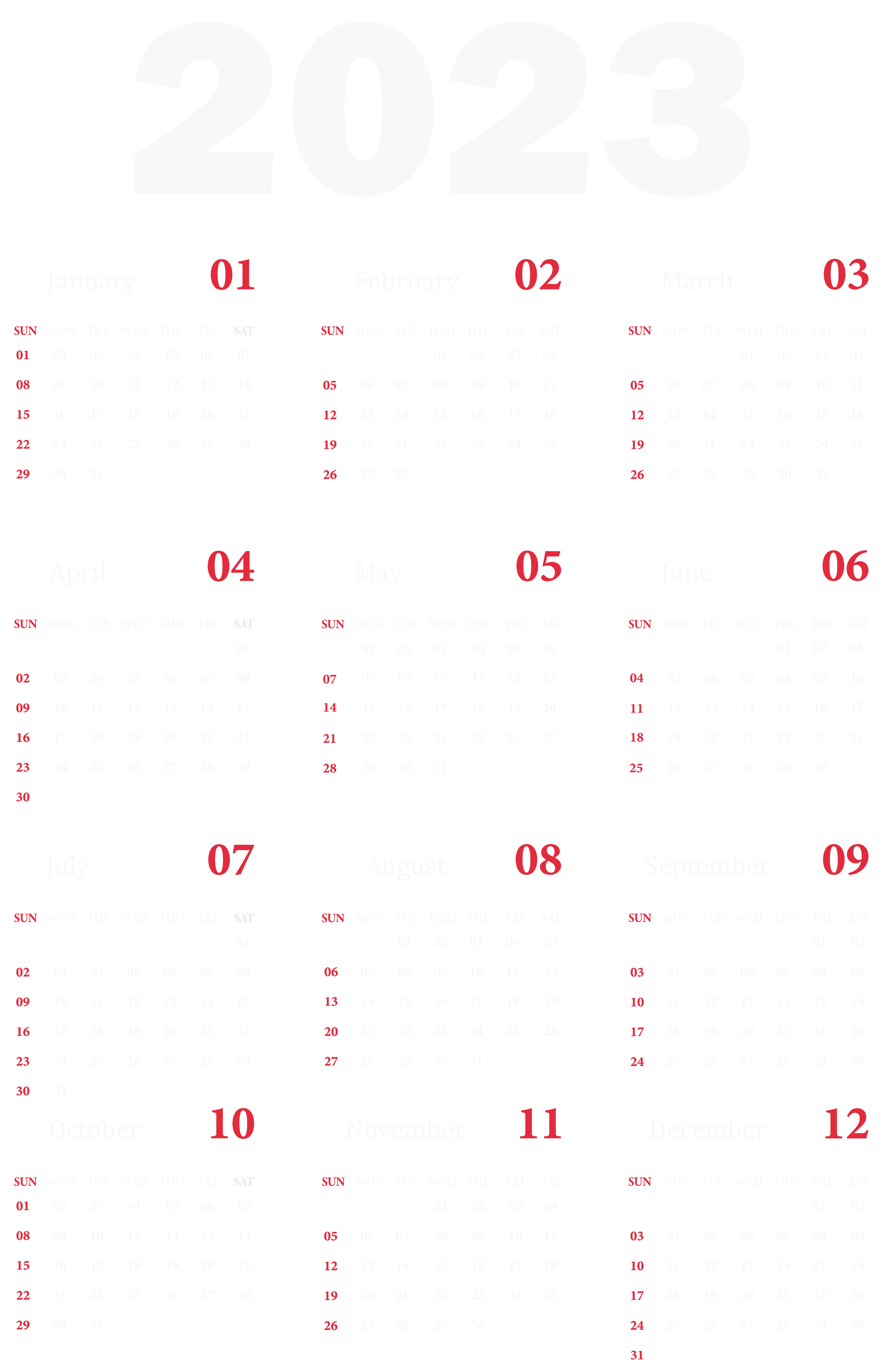 This Clipart Image: "2023 Calendar US White Transparent Clipart" is part of