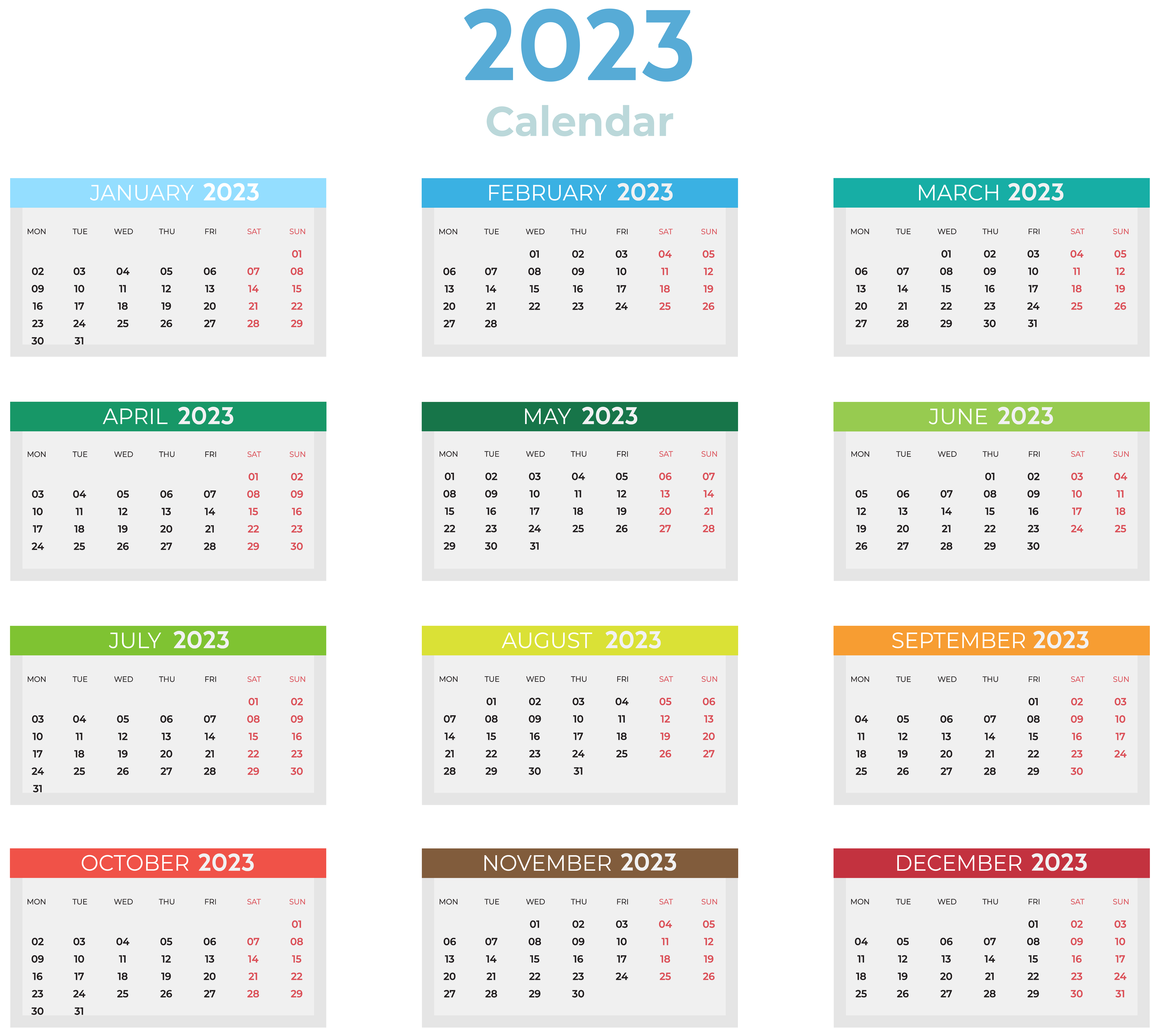 This Clipart Image: "2023 Calendar with Colors Clipart" is part of