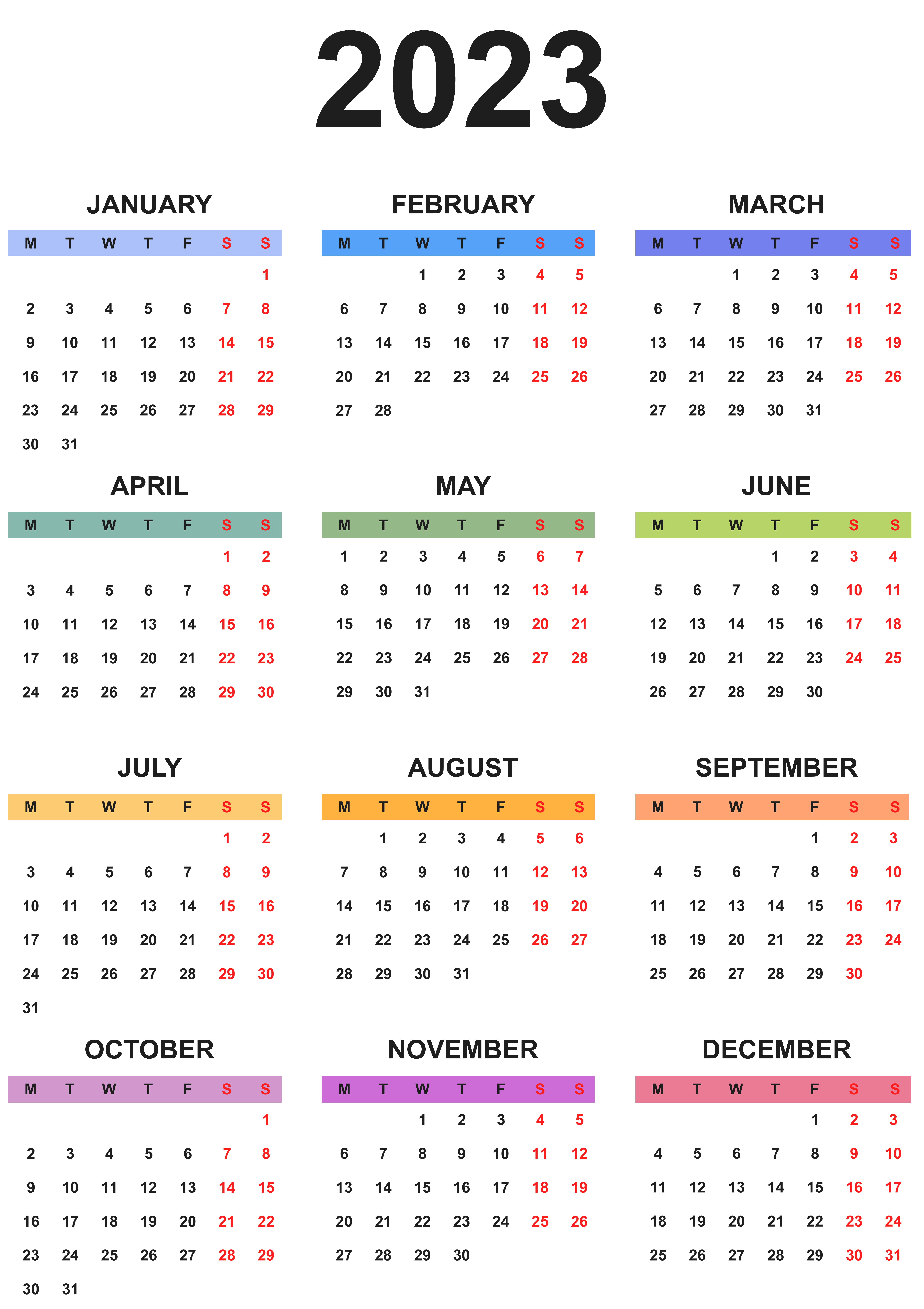 This Clipart Image: "2023 EU Colorful Calendar Transparent Clipart" is part of
