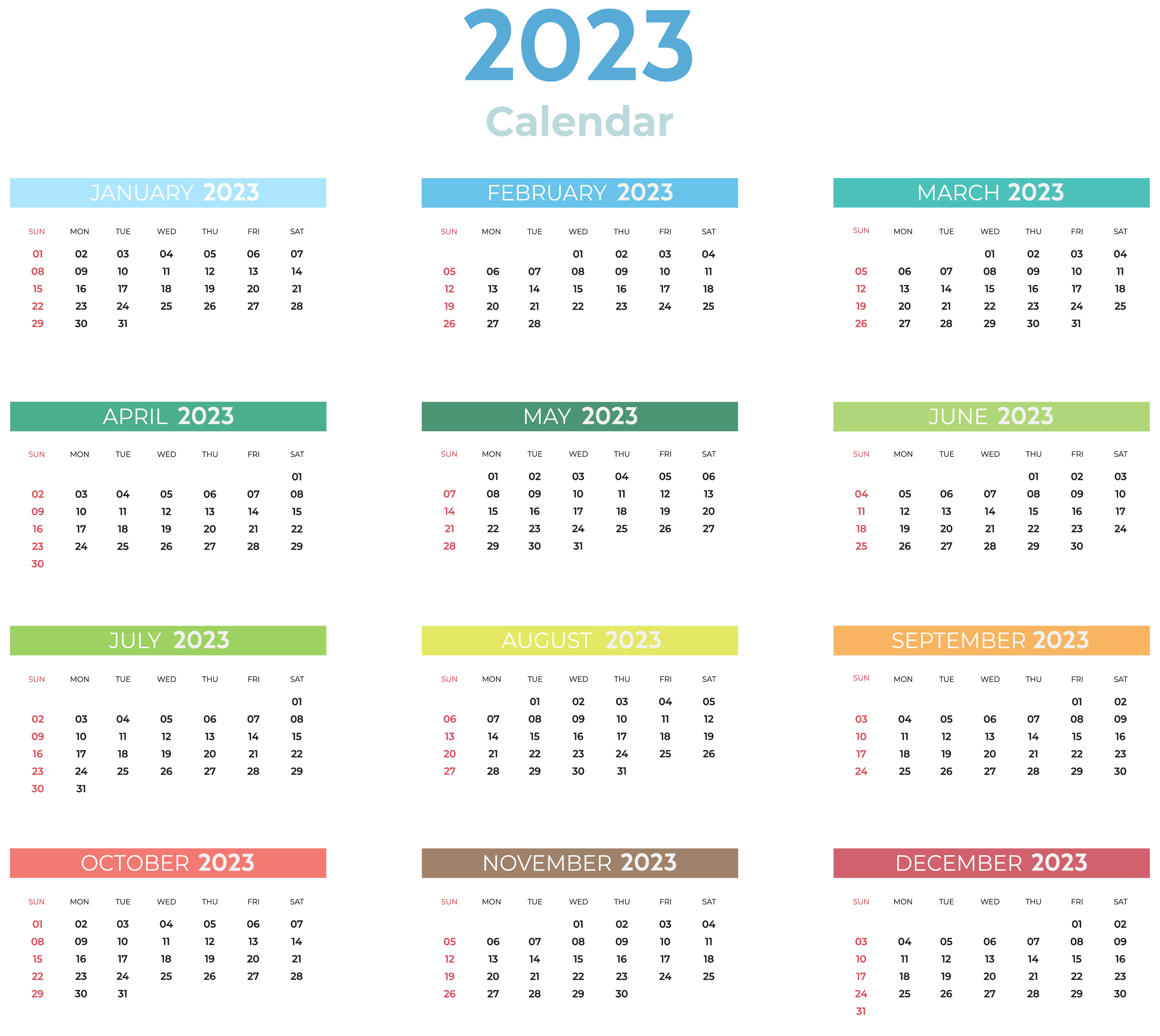 This Clipart Image: "2023 US Calendar with Colors Transparent Clipart" is part of