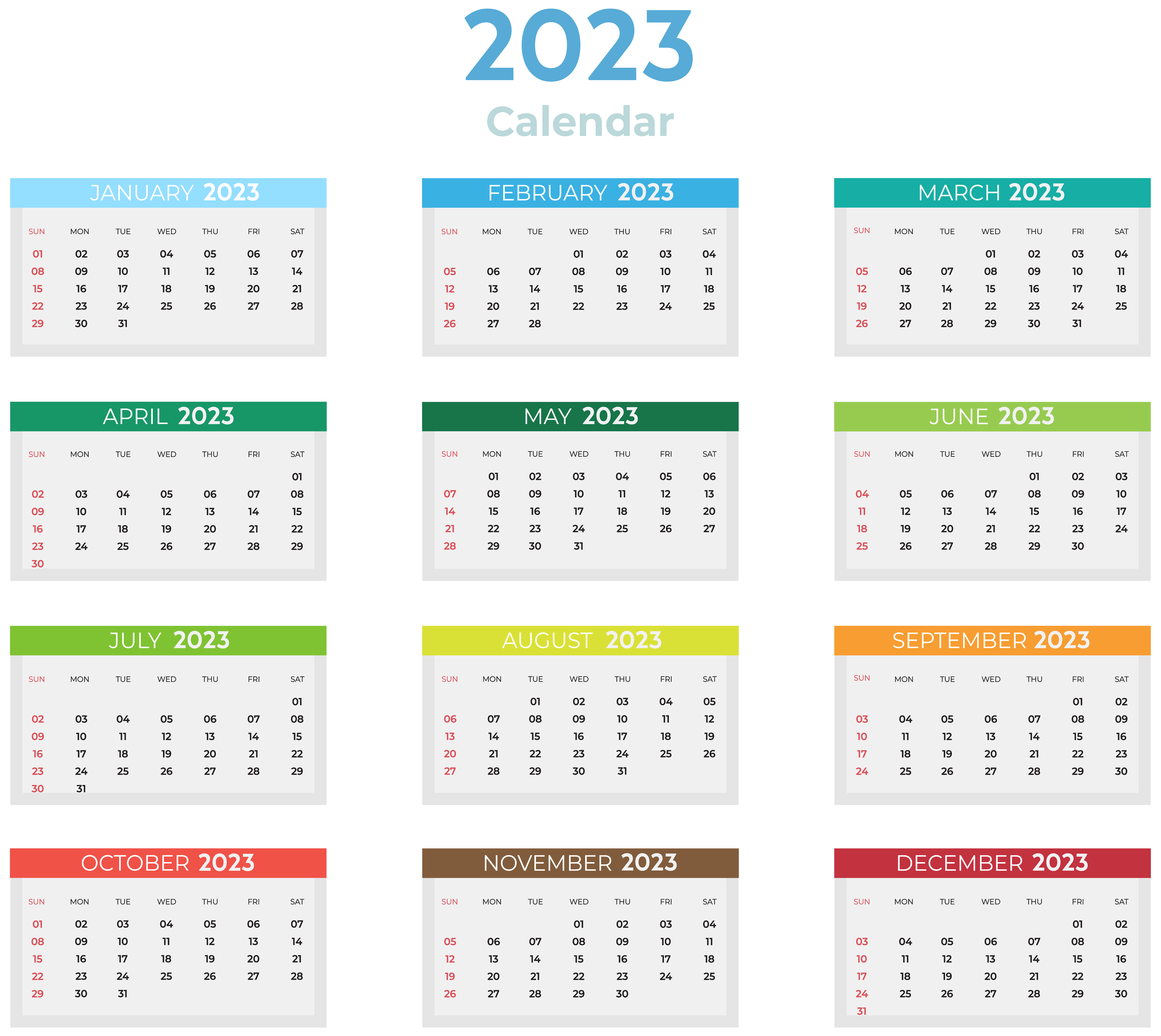 This Clipart Image: "2023 US Colors Calendar Clipart" is part of