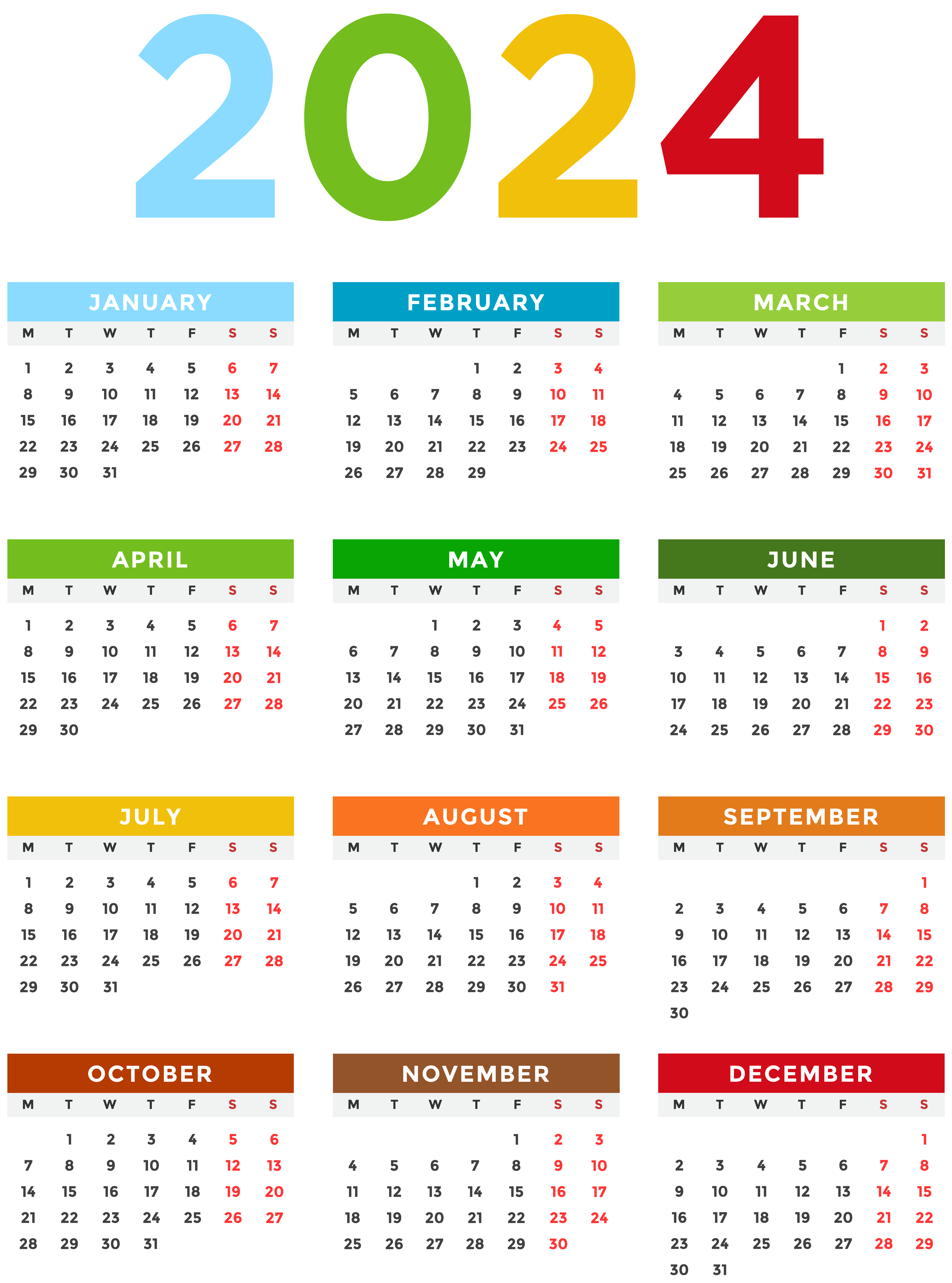This Image: "2024 Calendar EU Colorful Transparent Image" is part of