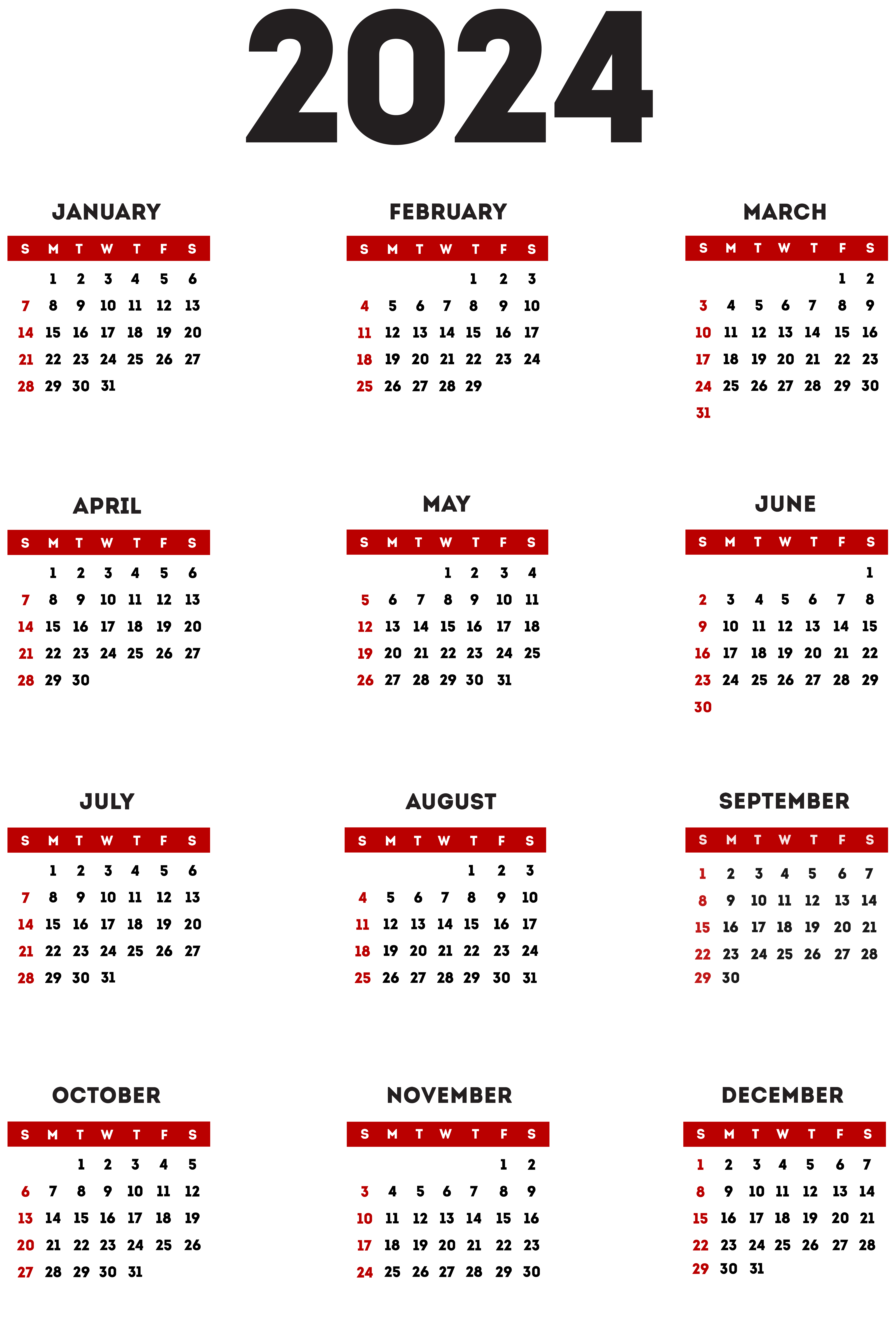 This Clipart Image: "2024 Calendar Transparent Red Black PNG Clipart" is part of