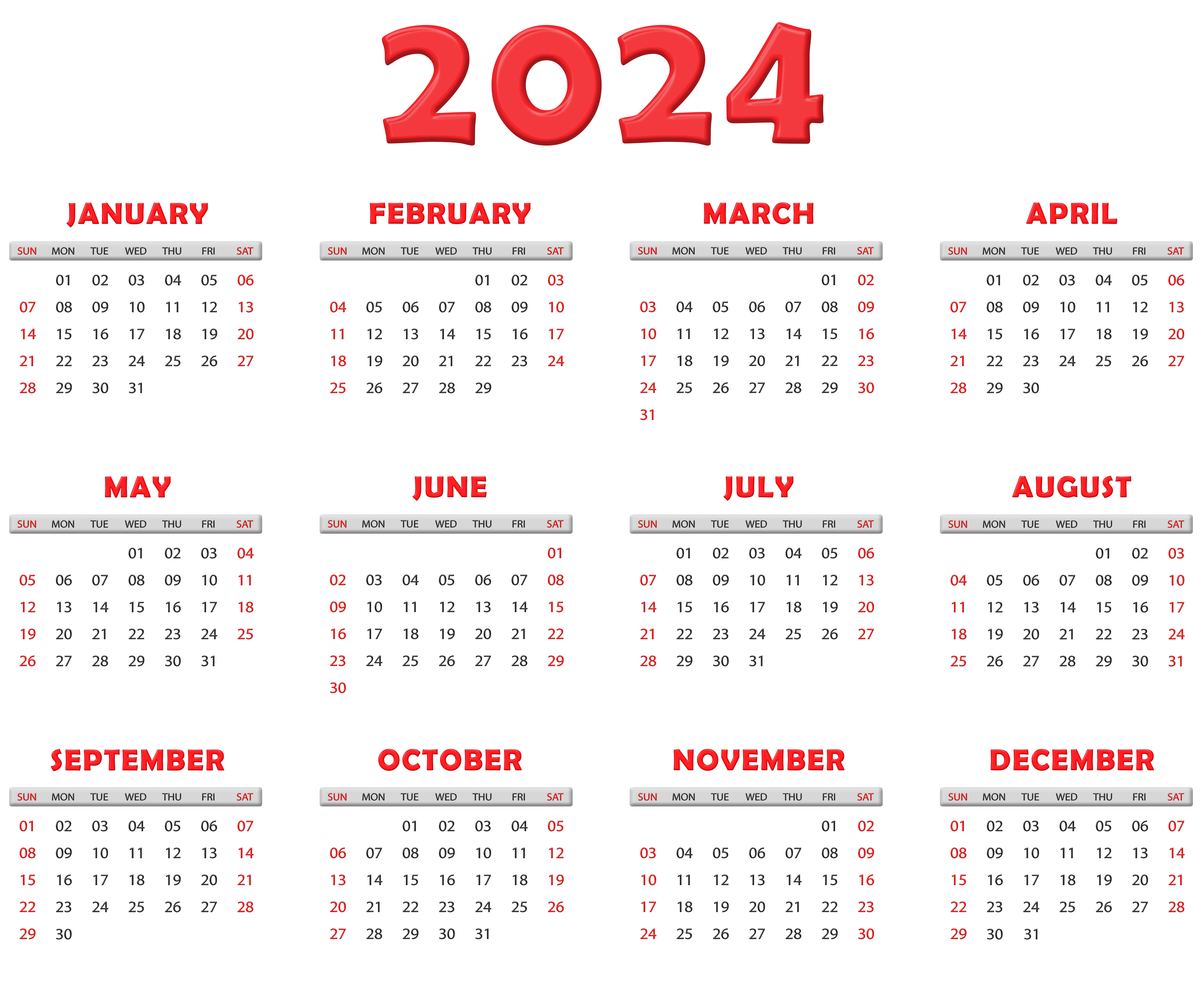This Image: "2024 Calendar Transparent Red US Image" is part of