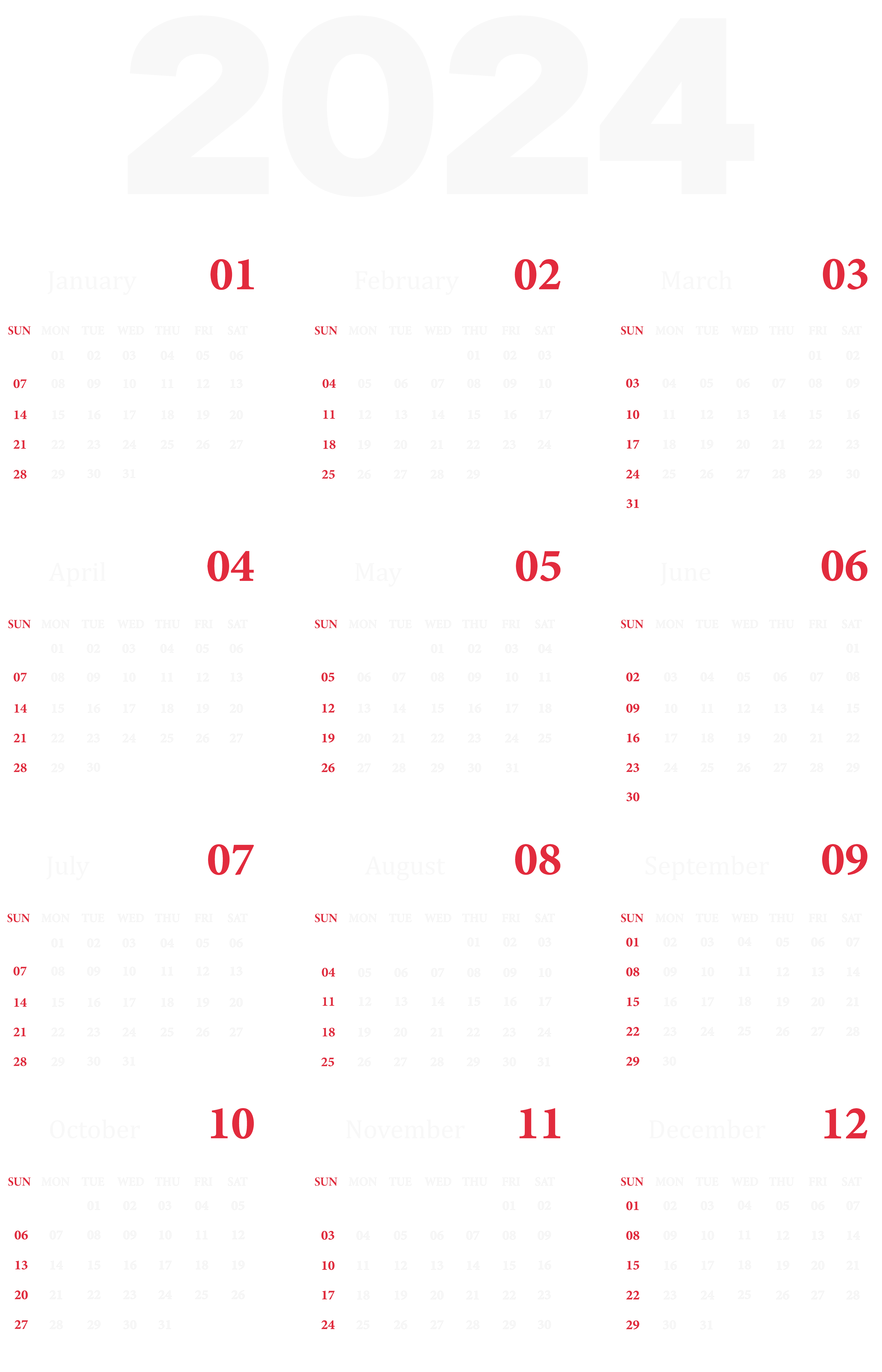 This Clipart Image: "2024 Calendar US White Transparent Clipart" is part of