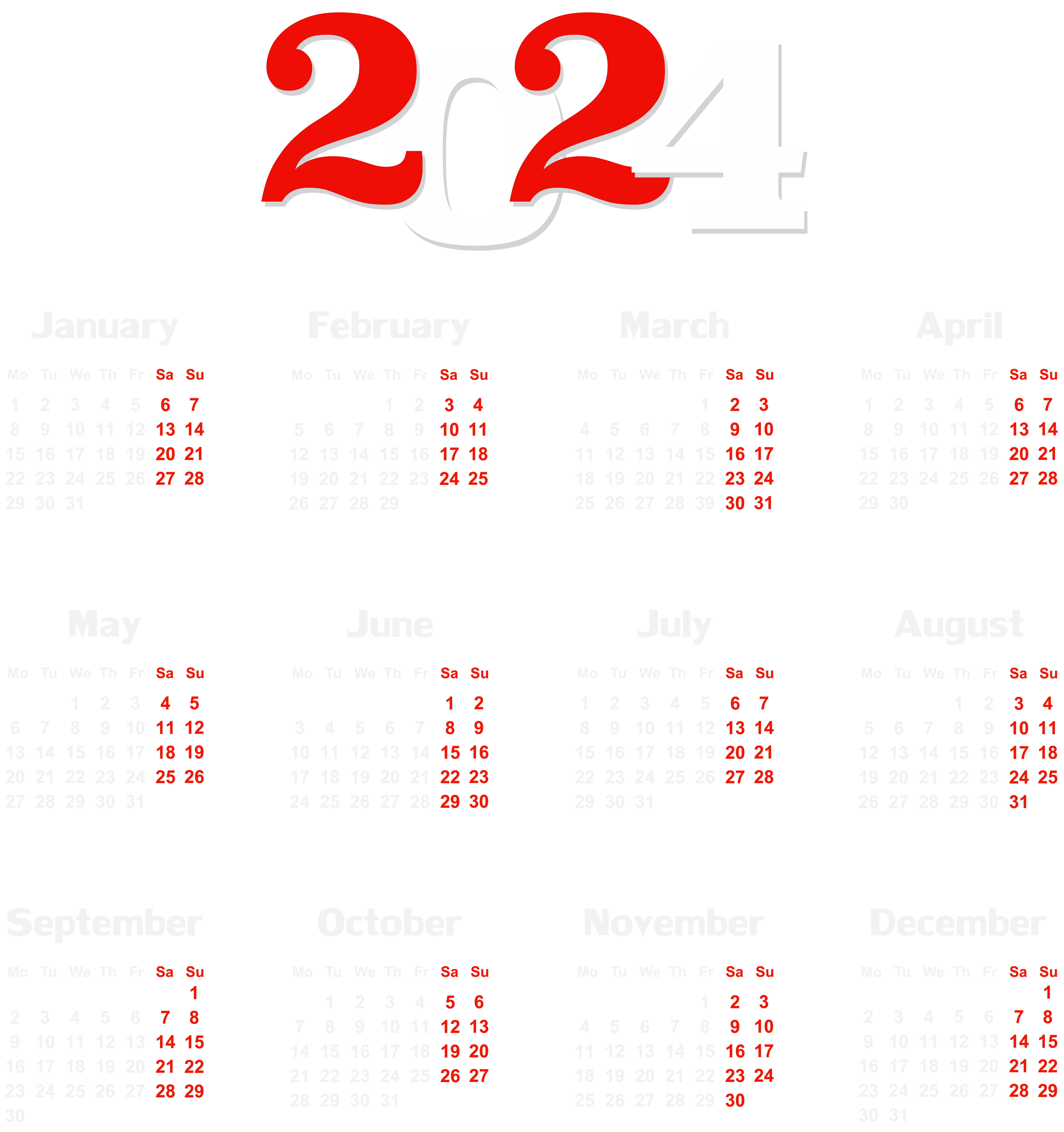 This Clipart Image: "2024 EU Calendar White Transparent PNG Clip Art" is part of