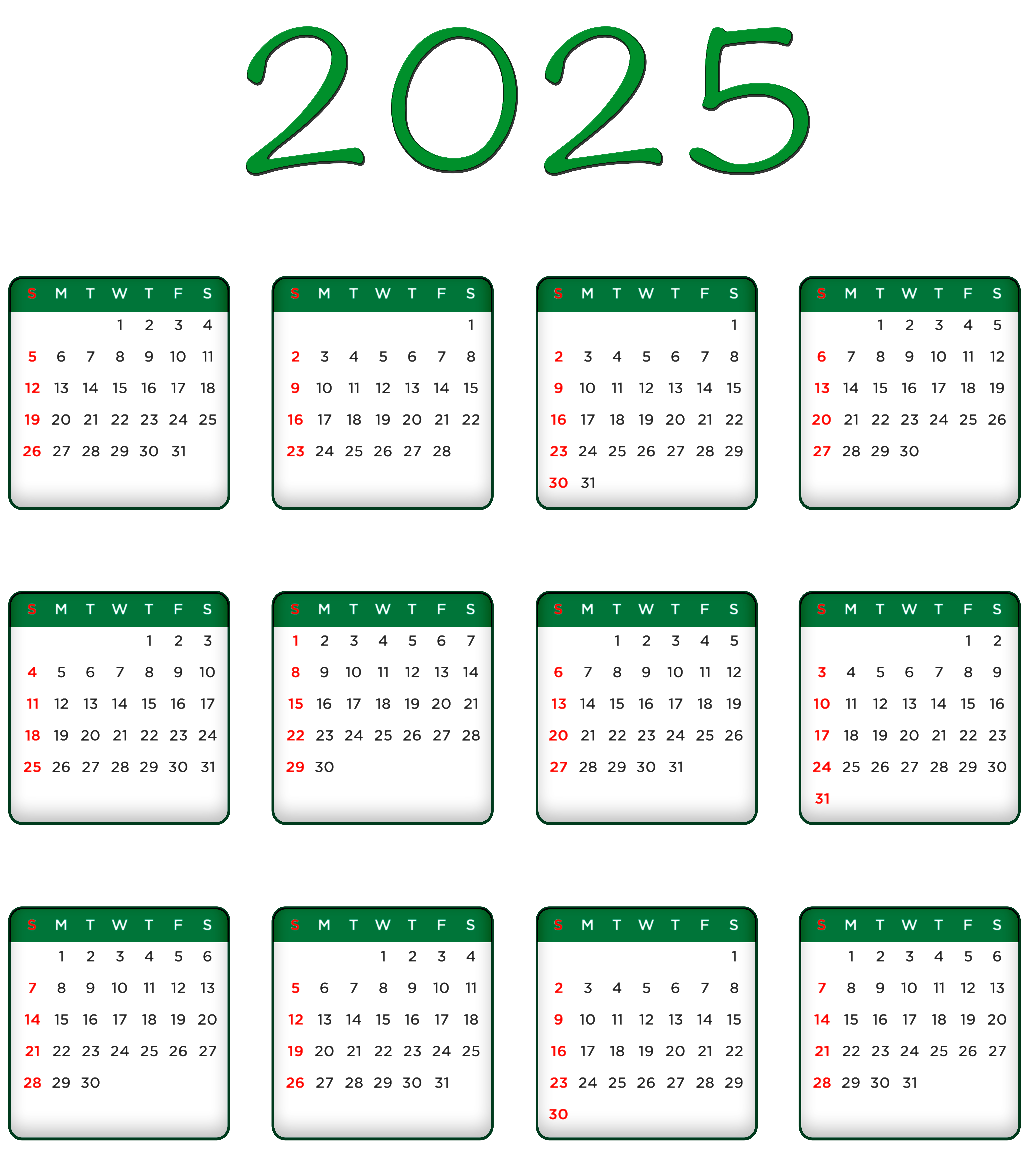 This Image: "2025 Green Calendar Transparent Image PNG" is part of