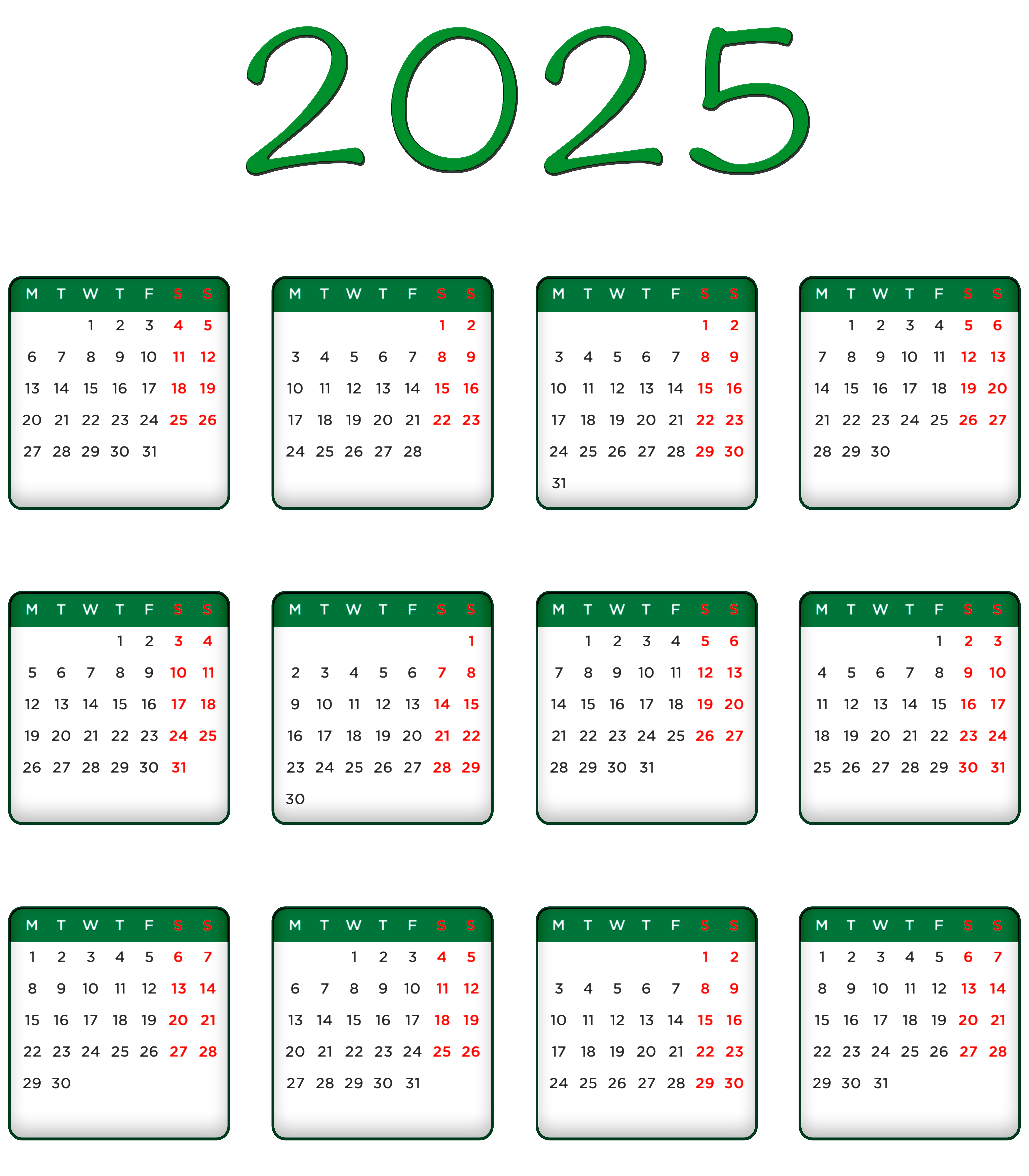 This Image: "2025 Green EU Calendar Transparent Image PNG" is part of