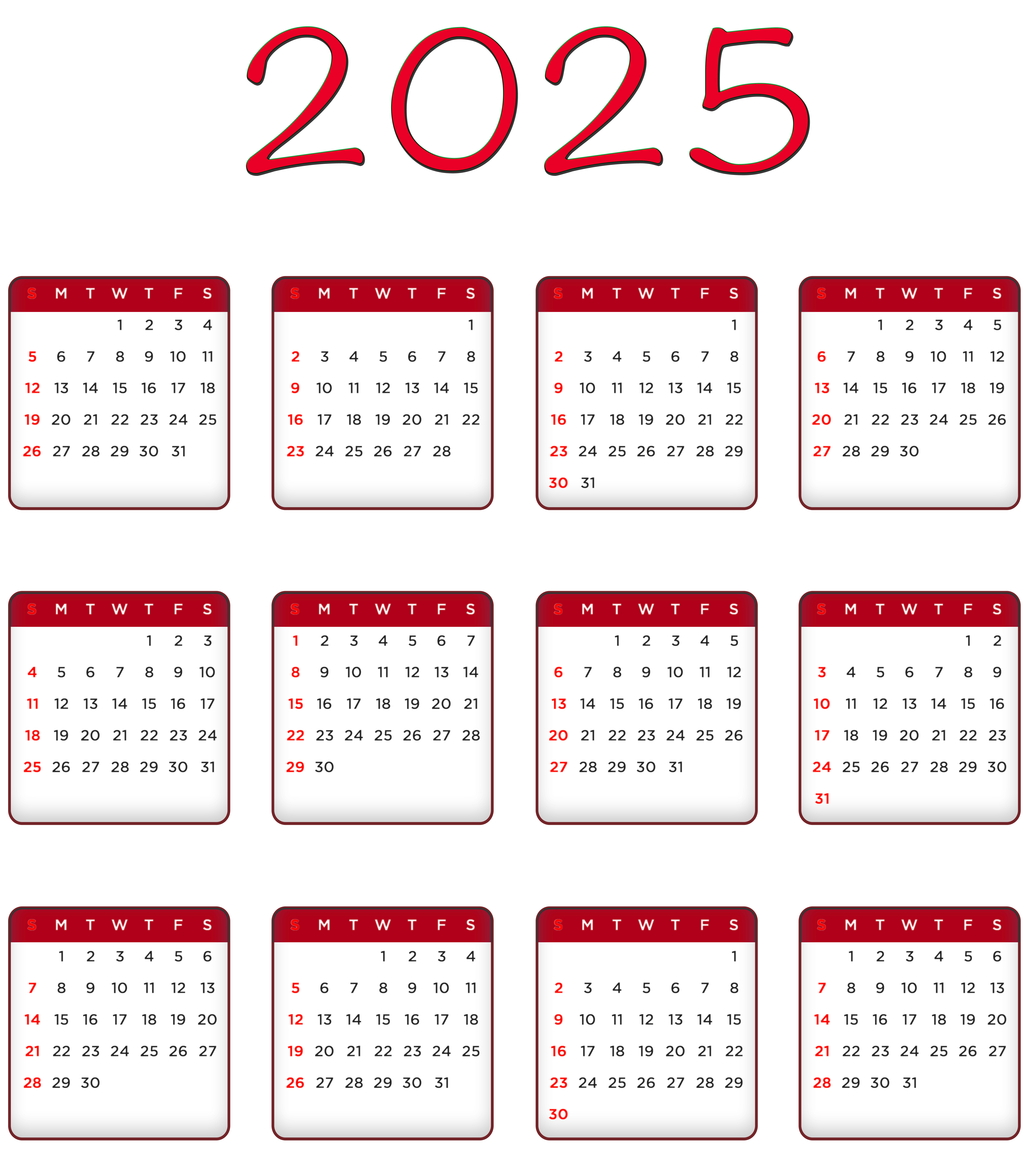 This Image: "2025 Red Calendar Transparent Image PNG" is part of