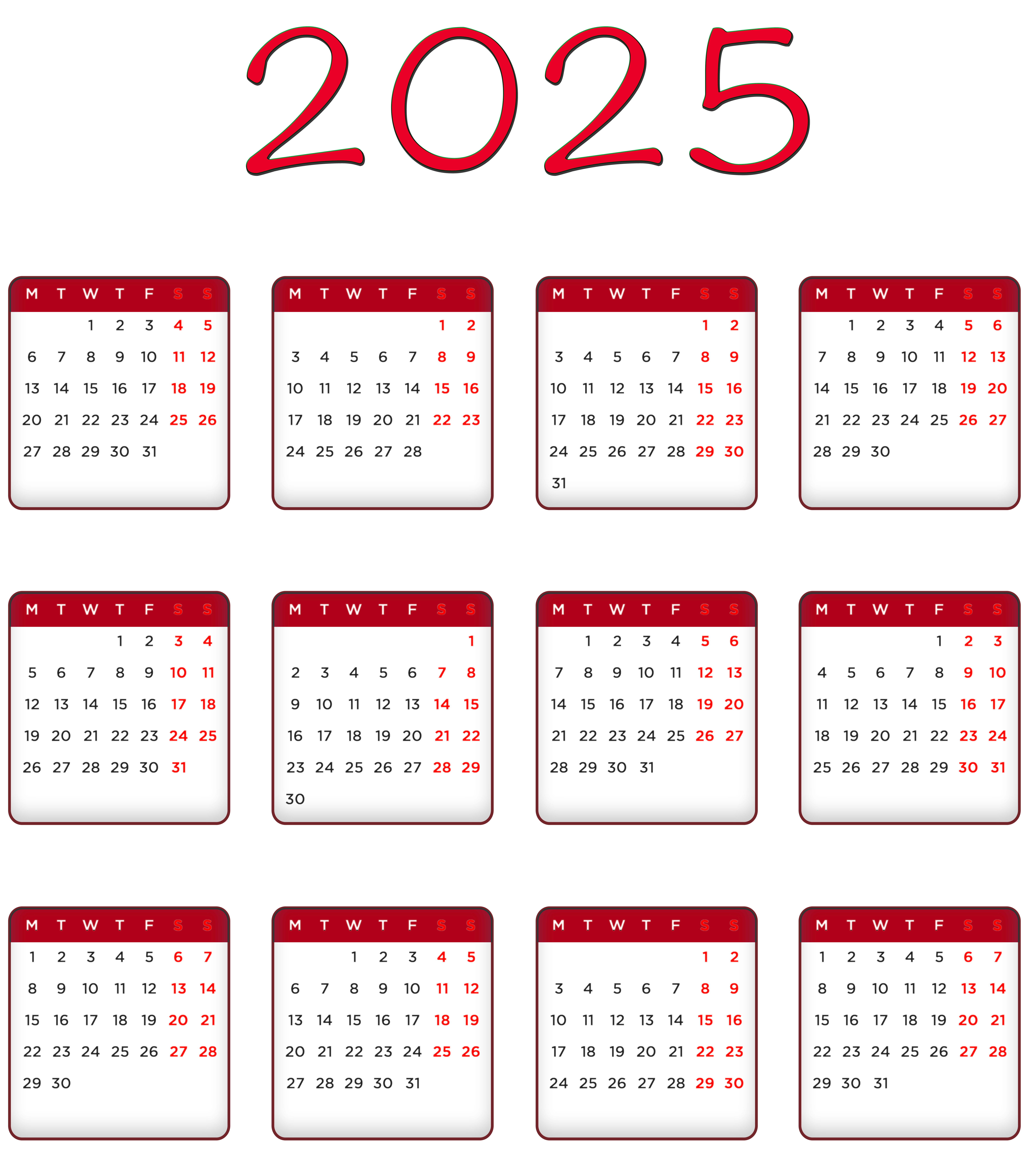 This Image: "2025 Red EU Calendar Transparent Image PNG" is part of