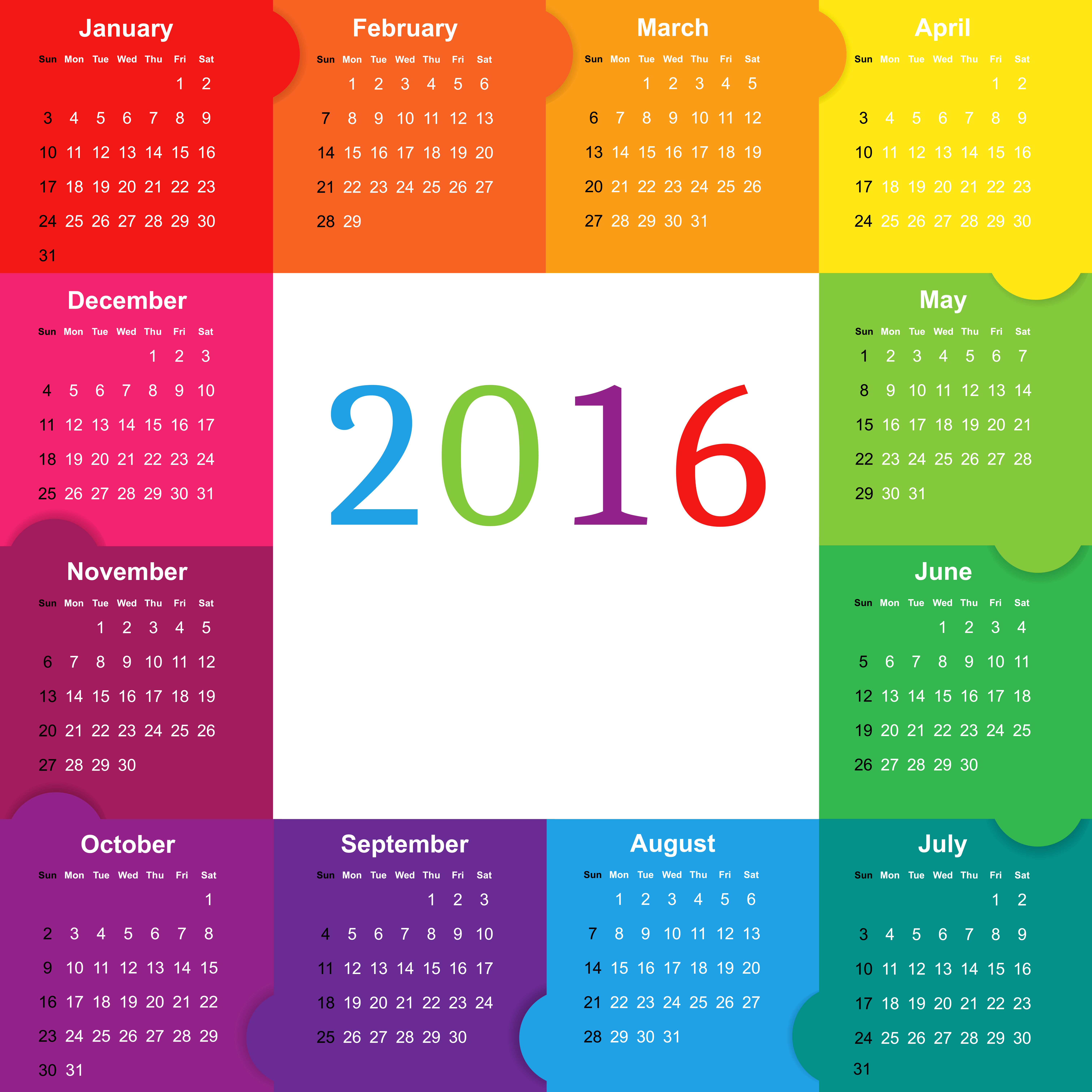 This Image: "Colorful 2016 Calendar PNG Image" is part of