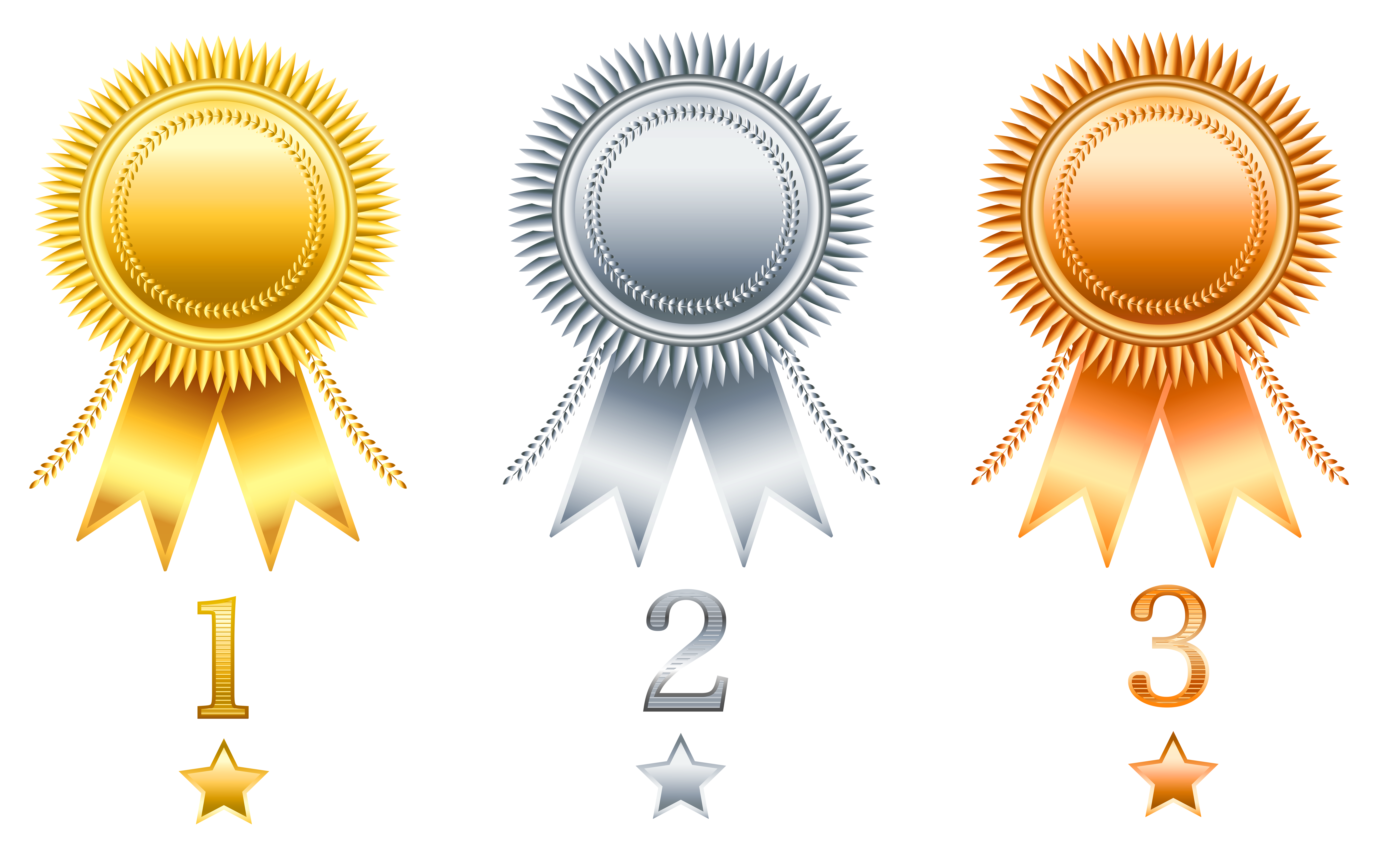 This Image: "Gold Silver Copper Transparent Rosette Prizes Set" is part of