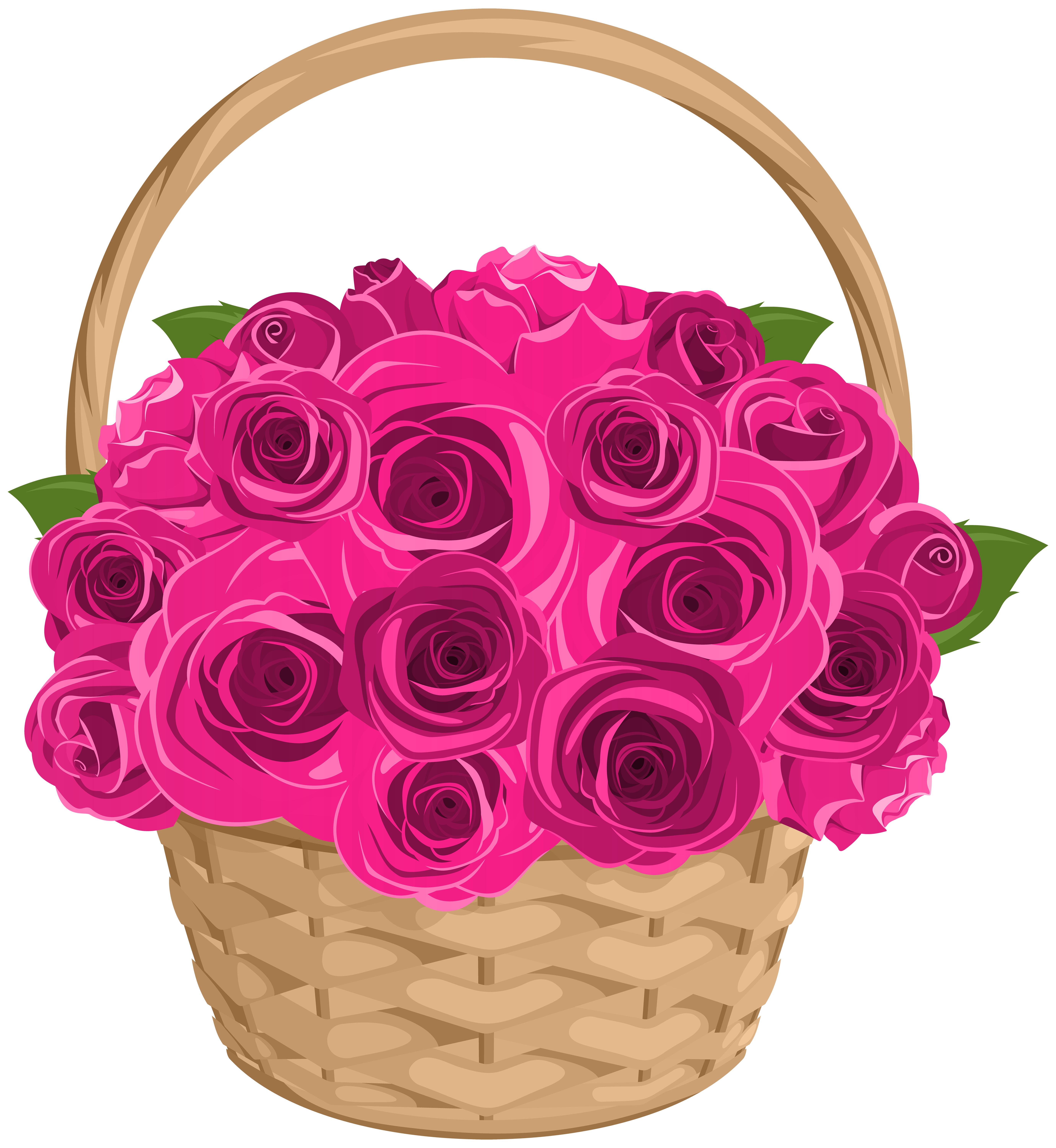 This Clipart Image: "Basket with Roses Transparent PNG Clip Art" is part of