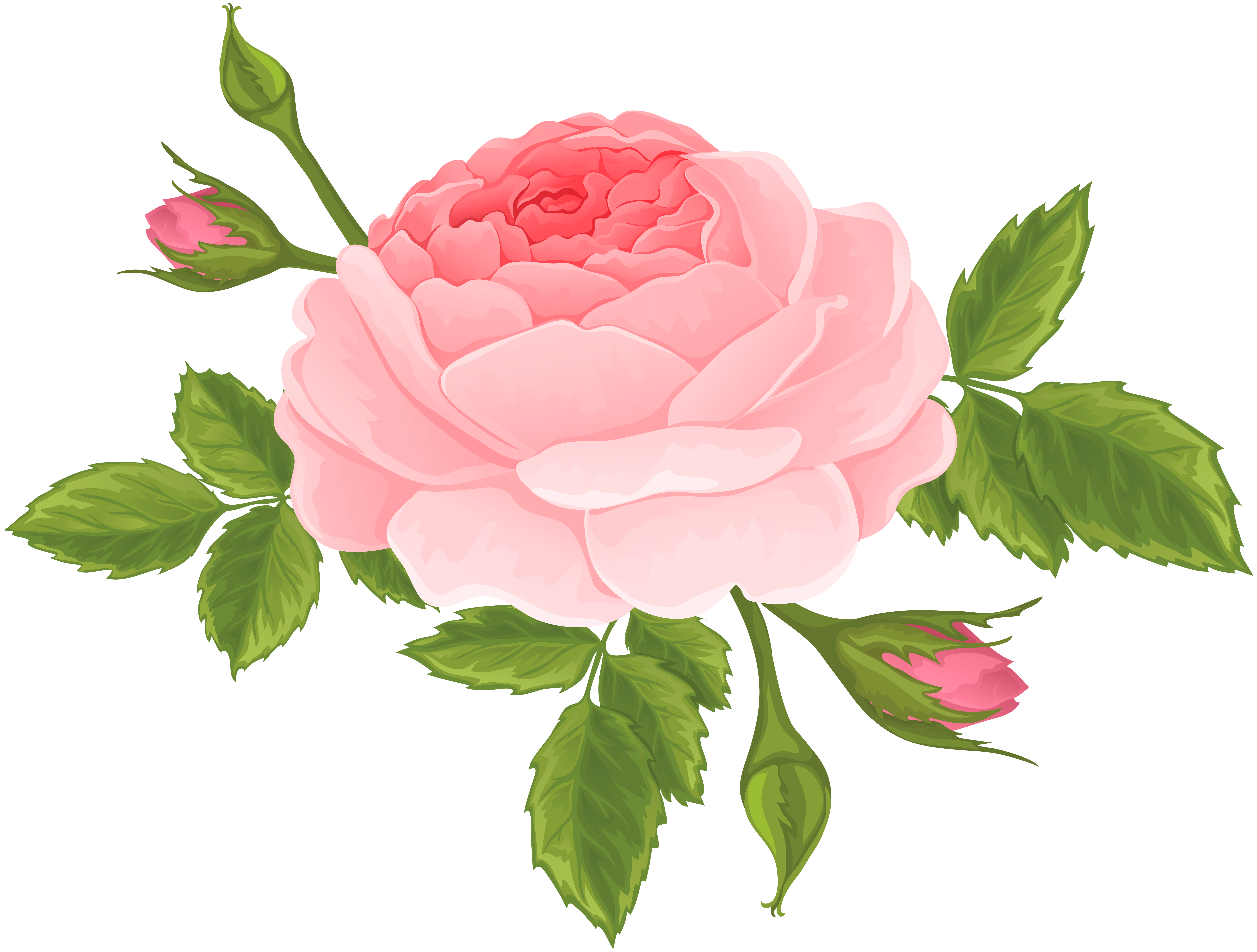 This Clipart Image: "Pink Rose with Buds PNG Clip Art Image" is part of