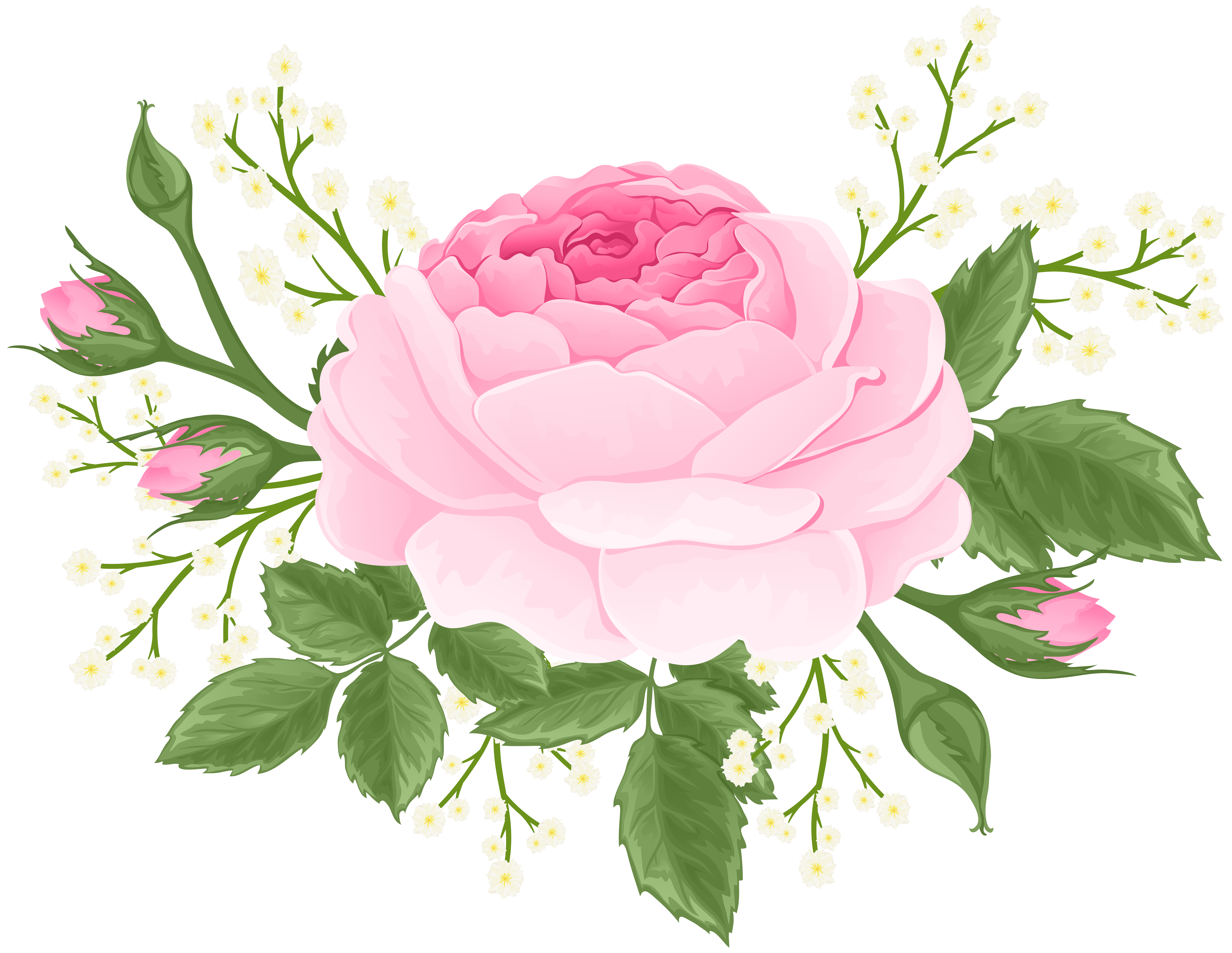 This Clipart Image: "Pink Rose with White Flowers PNG Clip Art Image" is part of
