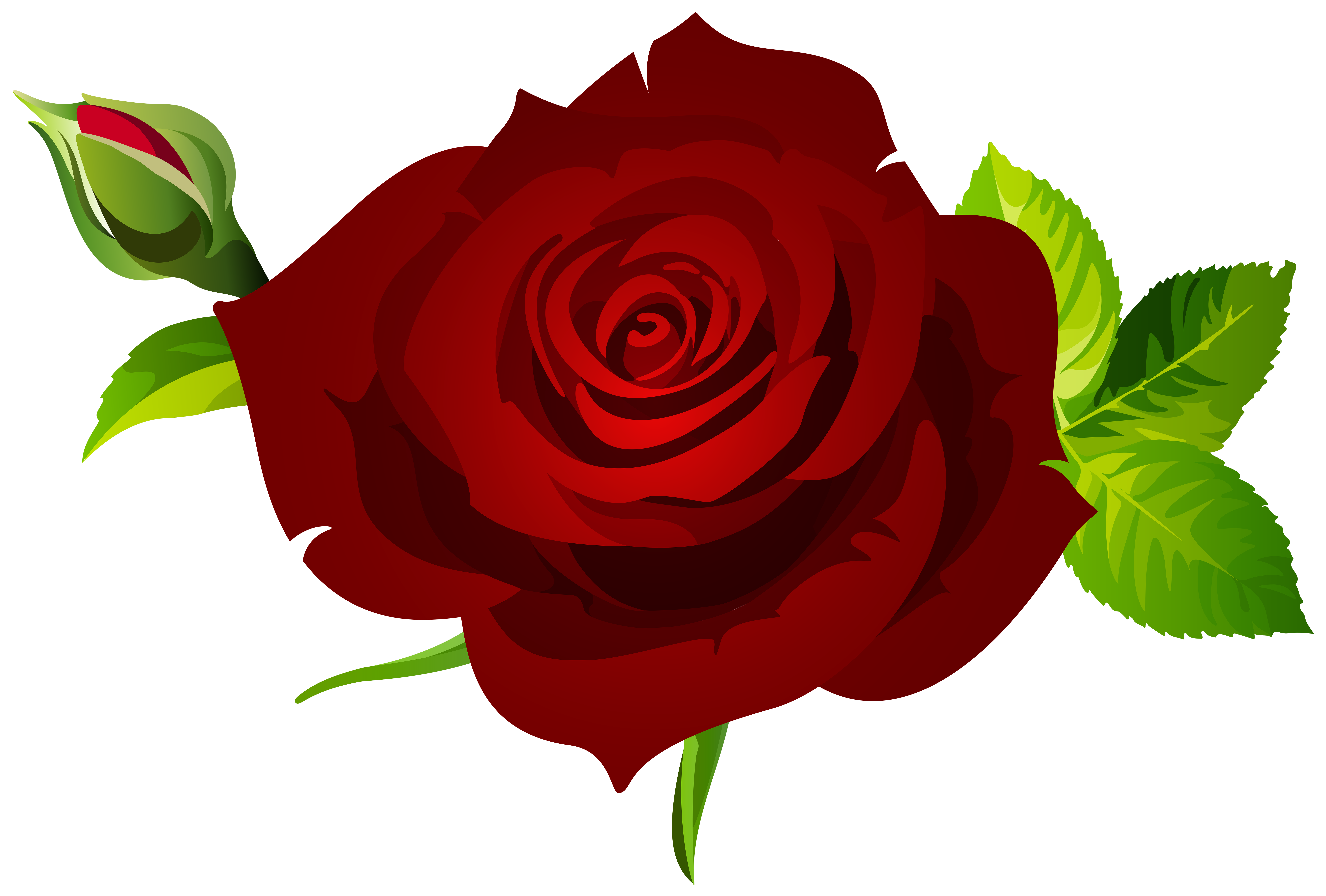 This Clipart Image: "Rose with Bud and Leaves Dark Red PNG Clipart" is part of