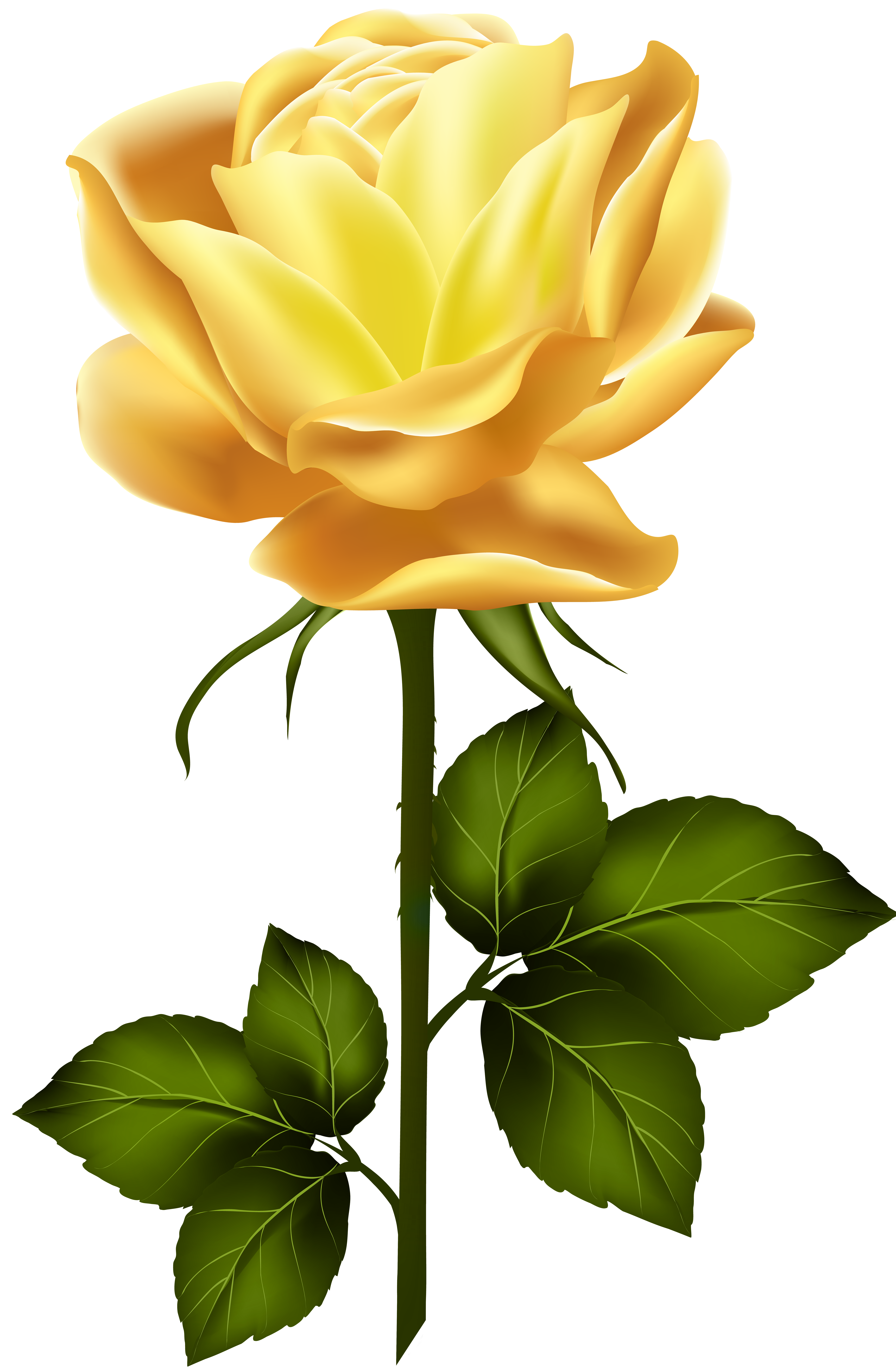 This Clipart Image: "Yellow Rose with Stem PNG Clip Art" is part of
