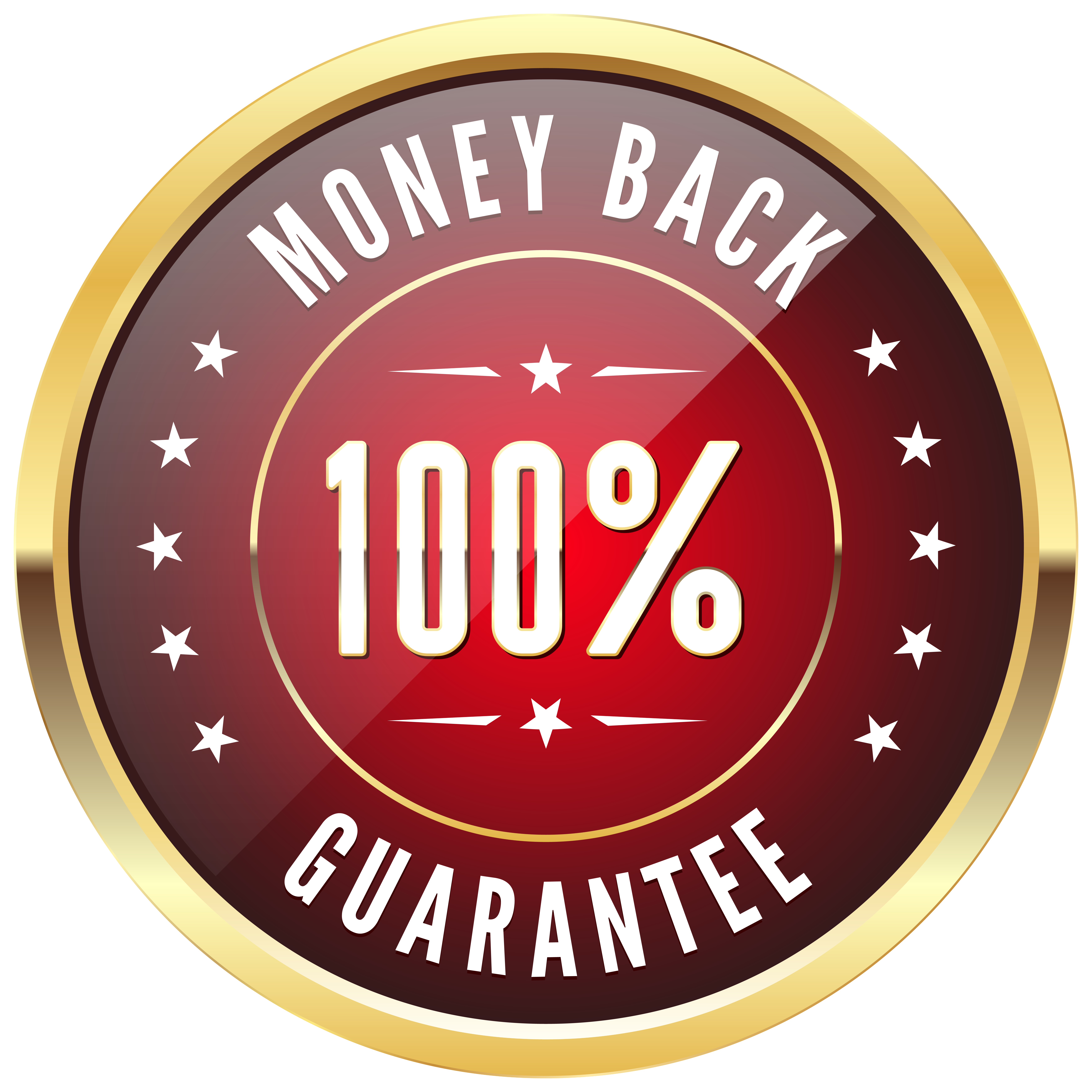 This Clipart Image: "100% Money Back Badge Transparent PNG Clip Art Image" is part of