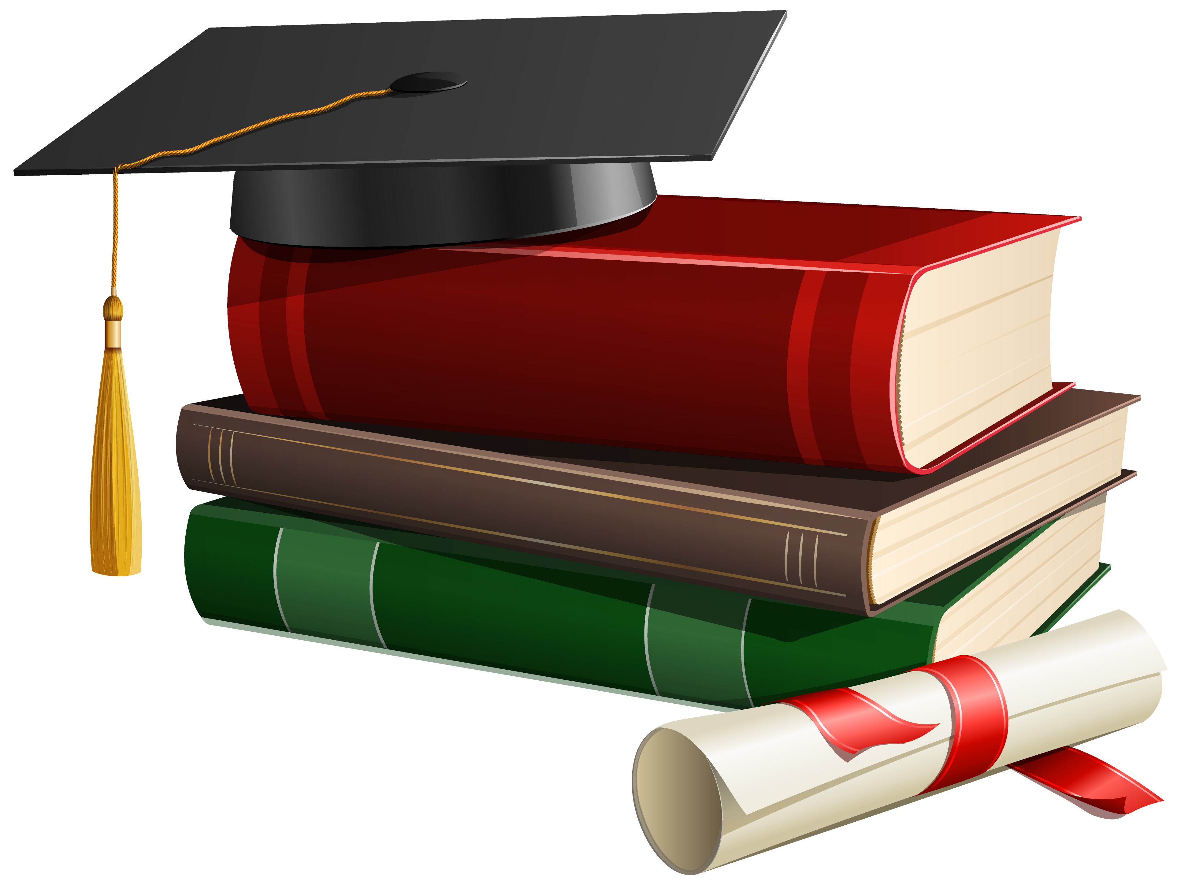This Clipart Image: "Graduation Cap Books and Diploma PNG Clipart" is part of