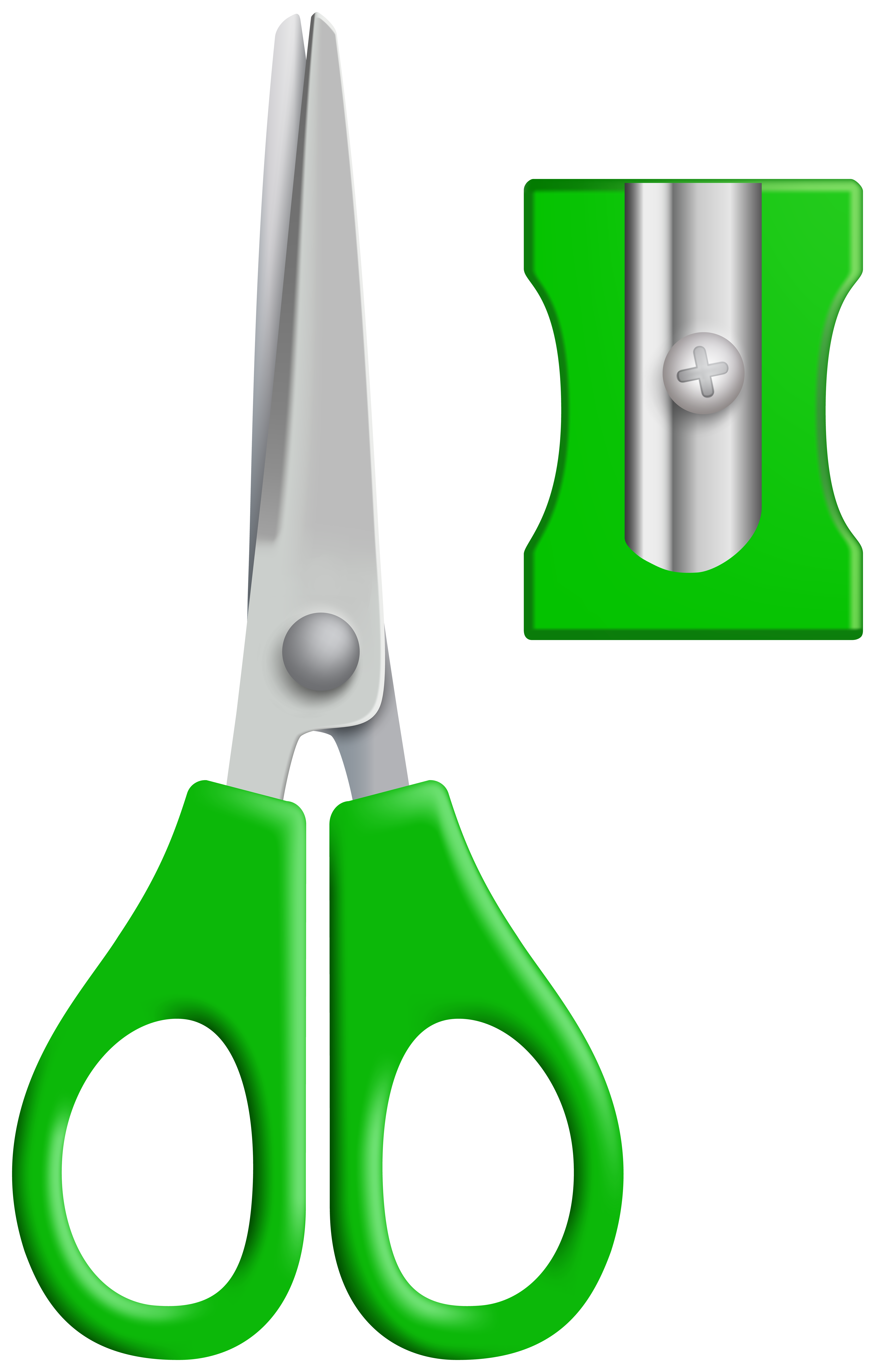 This Clipart Image: "Green Scissors and Sharpener PNG Clipart" is part of