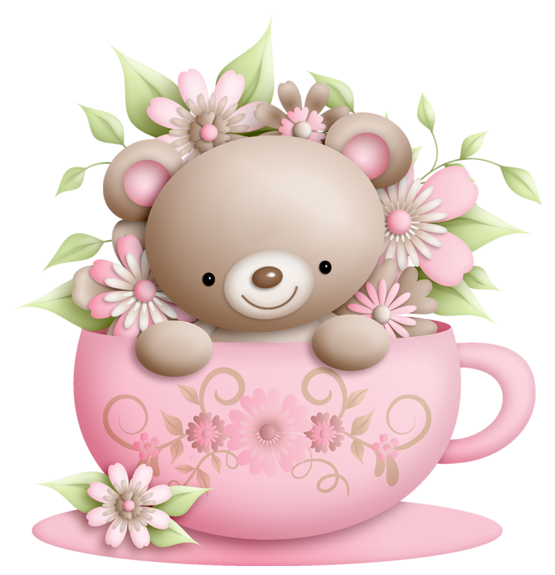 This Clipart Image: "Cup and Teddy with Flowers Decoration PNG Clipart" is part of