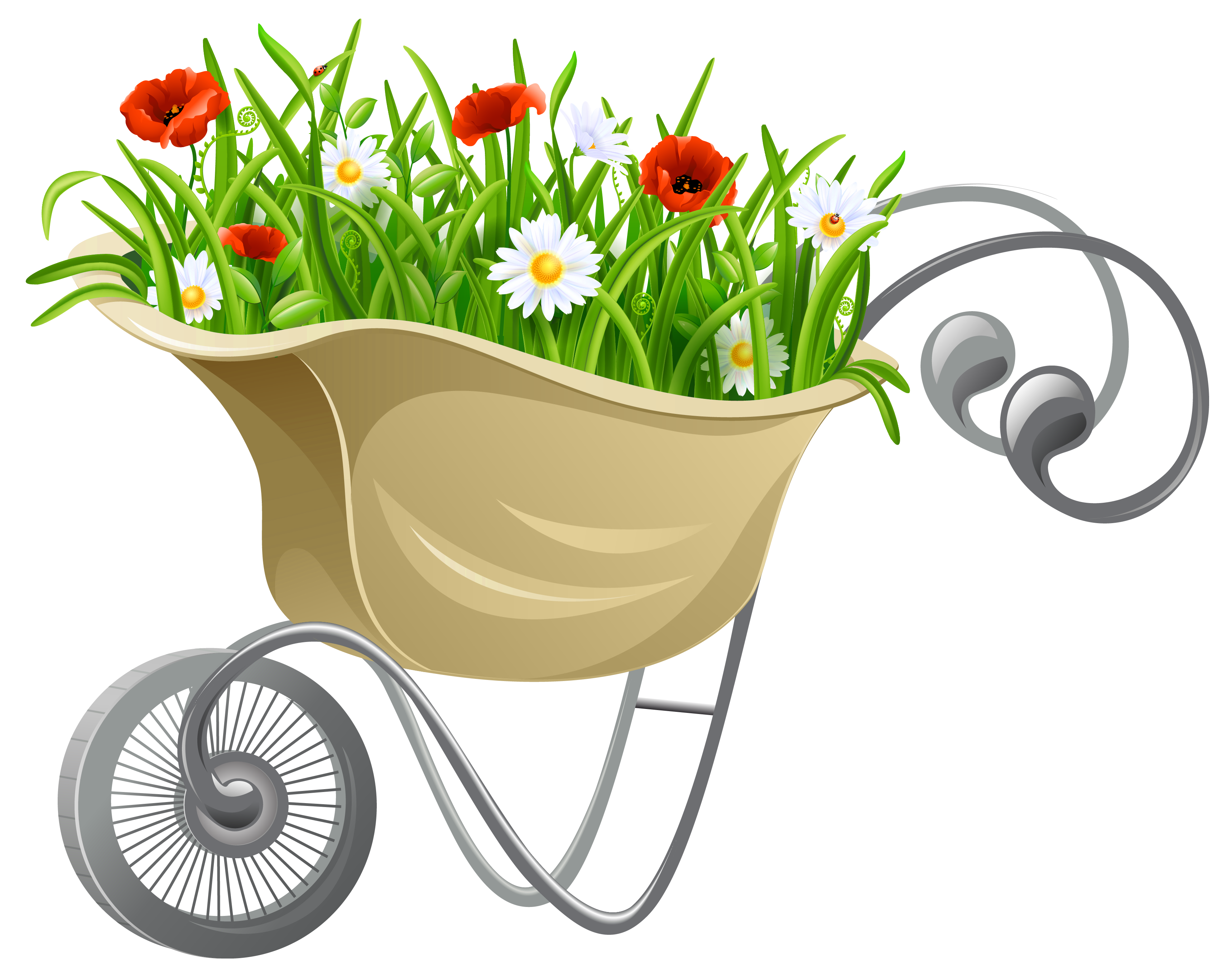 This Clipart Image: "Wheelbarrow with Flowers PNG Clipart" is part of