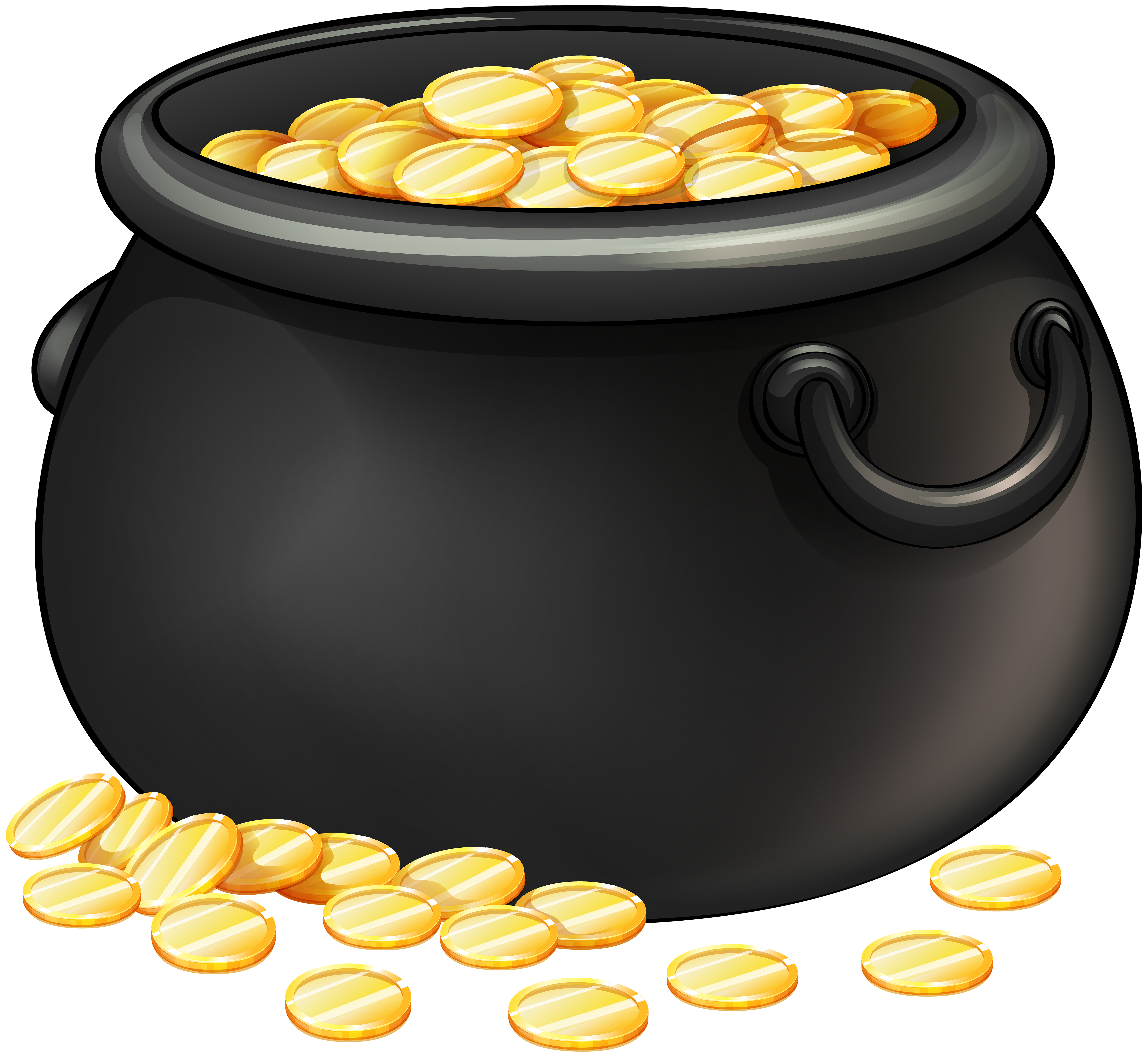 This Clipart Image: "Black Pot of Gold PNG Clip Art" is part of
