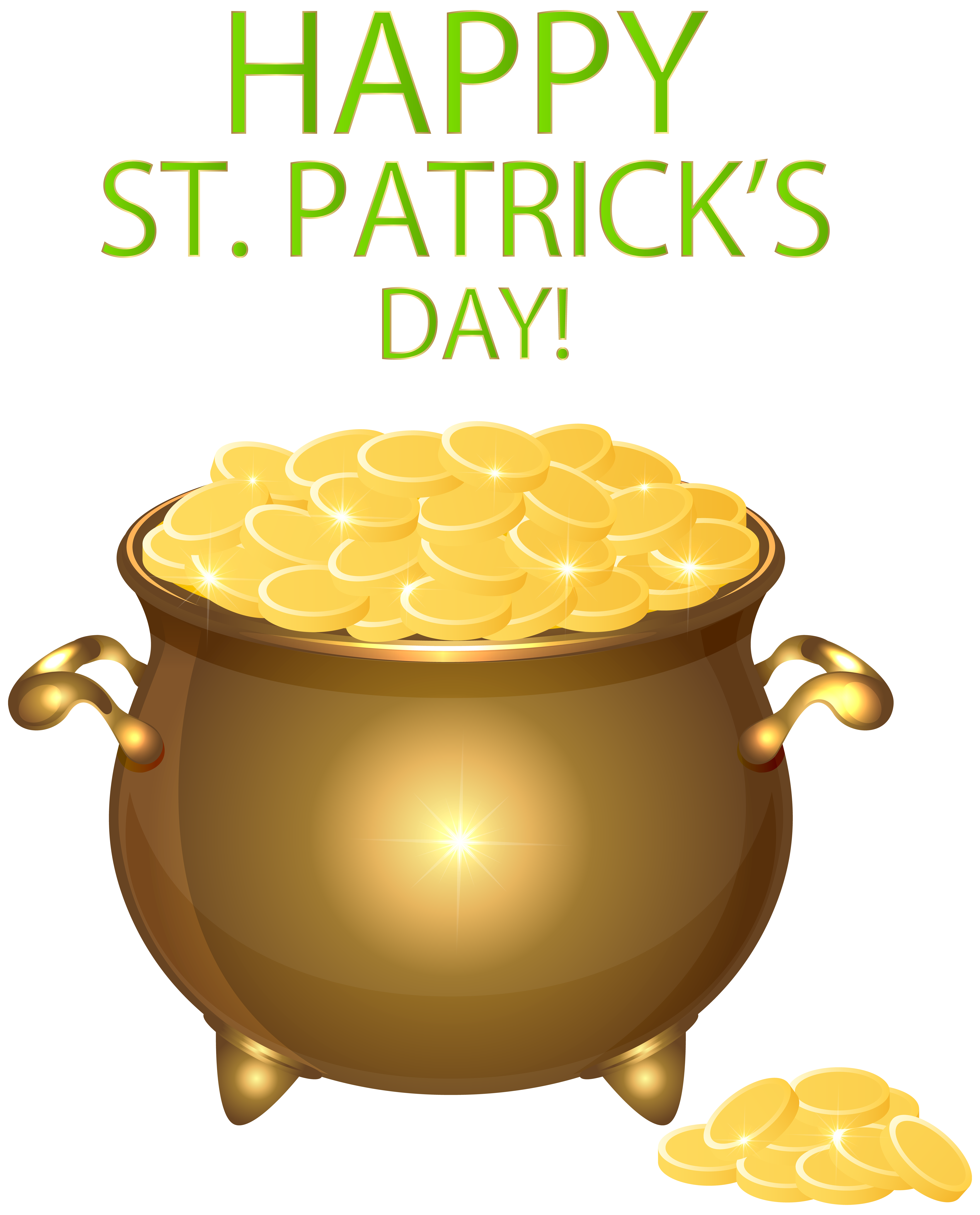 This Clipart Image: "Happy Saint Patrick's Day Pot of Gold Transparent PNG Clip Art" is part of