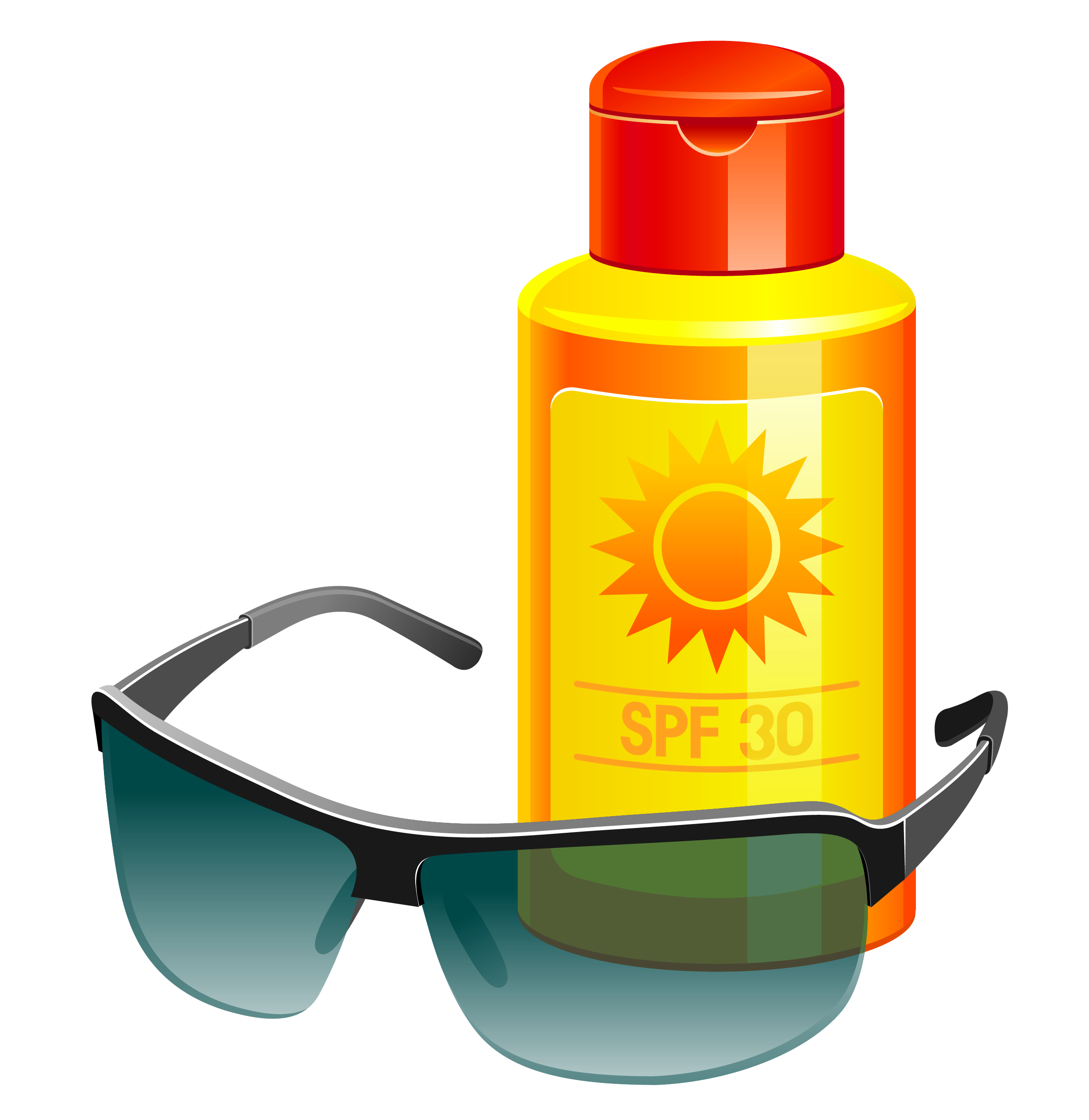 This Clipart Image: "Sunscreen Lotion and Sunglass PNG Vector Clipart" is part of