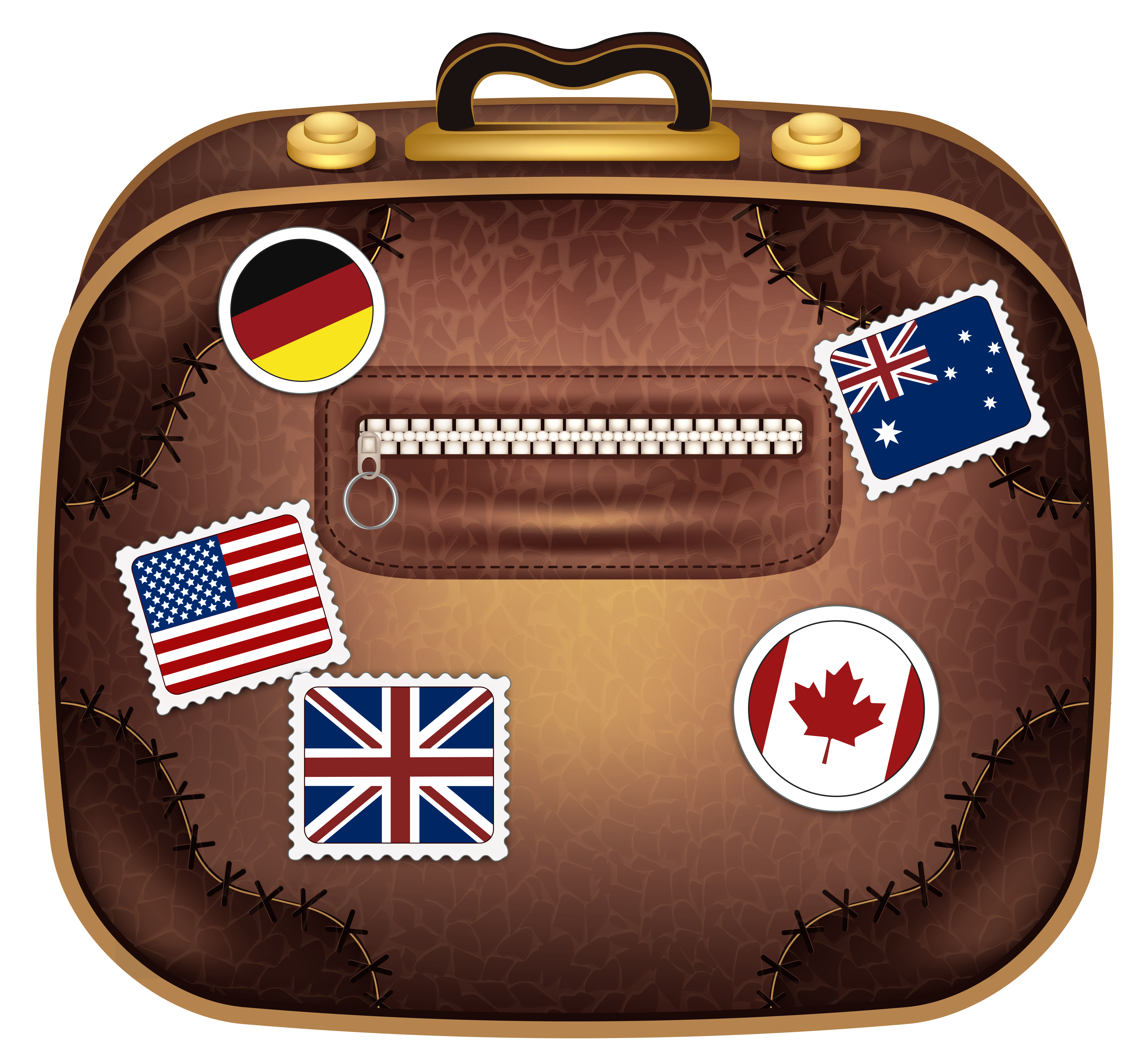 This Clipart Image: "Brown Suitcase with Flags PNG Clipart Picture" is part of