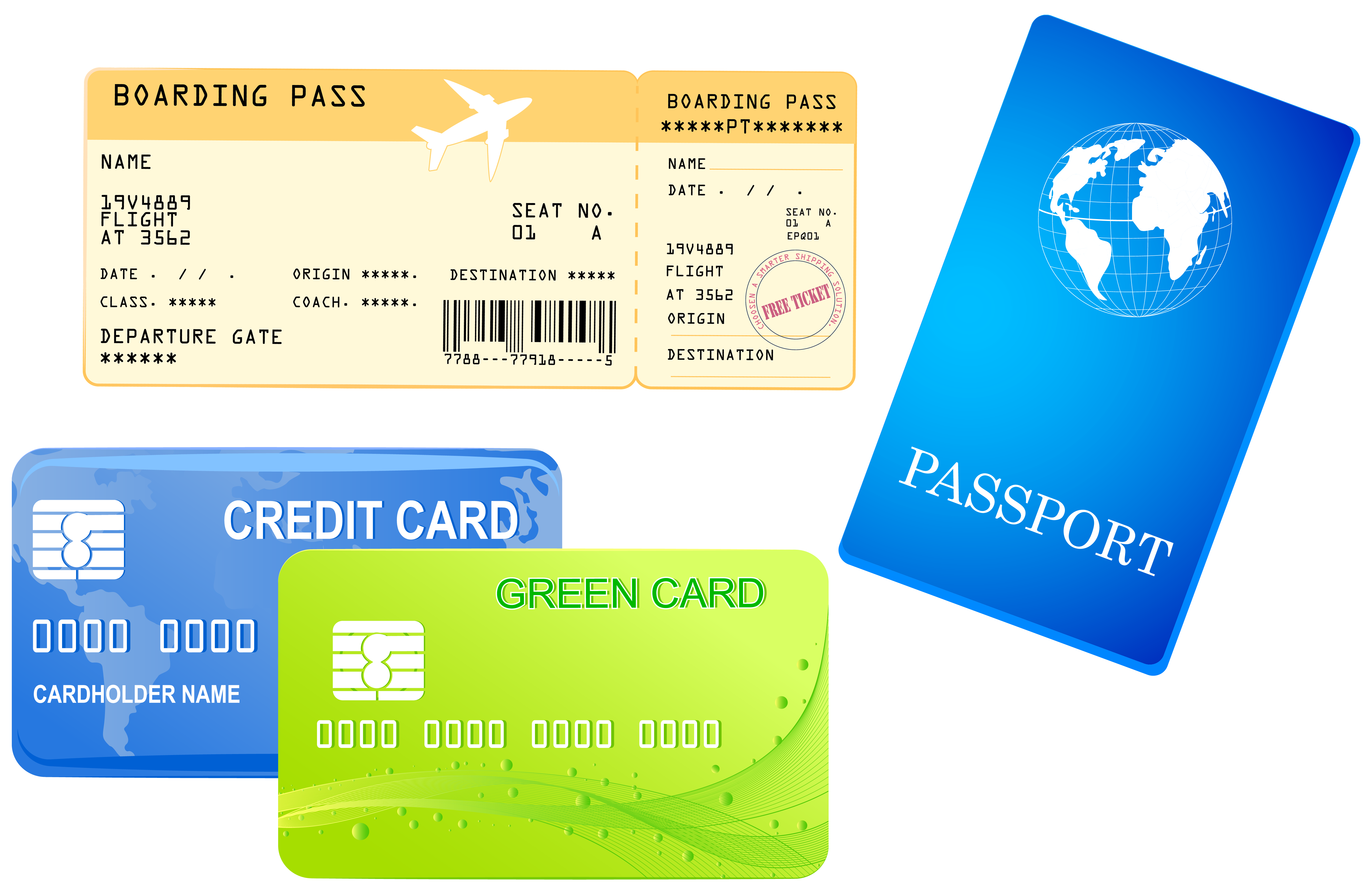 This Clipart Image: "Credit Cards Ticket and Passport PNG Clipart Image" is part of
