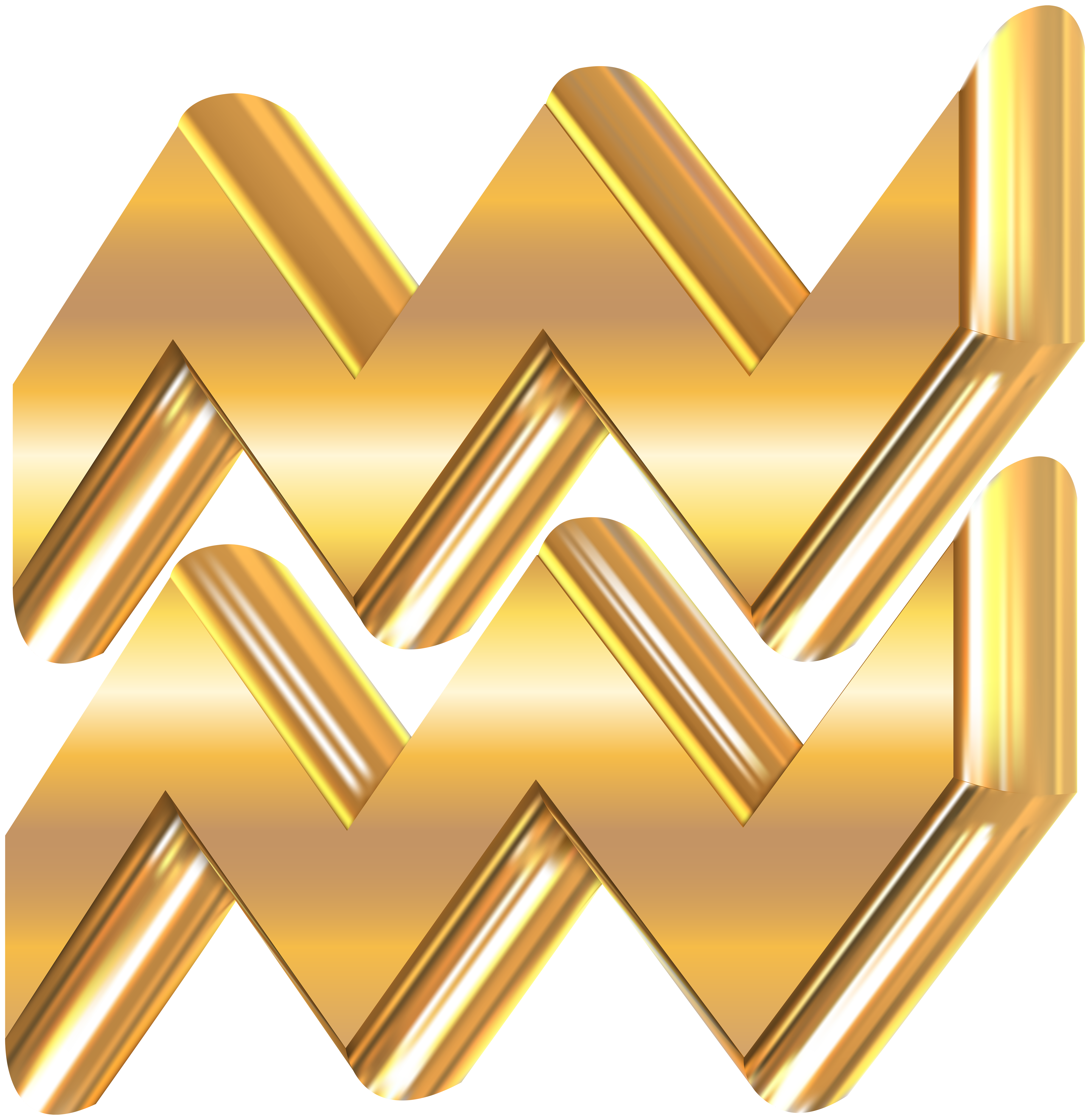 This Clipart Image: "Aquarius 3D Gold Zodiac Sign PNG Clip Art Image" is part of