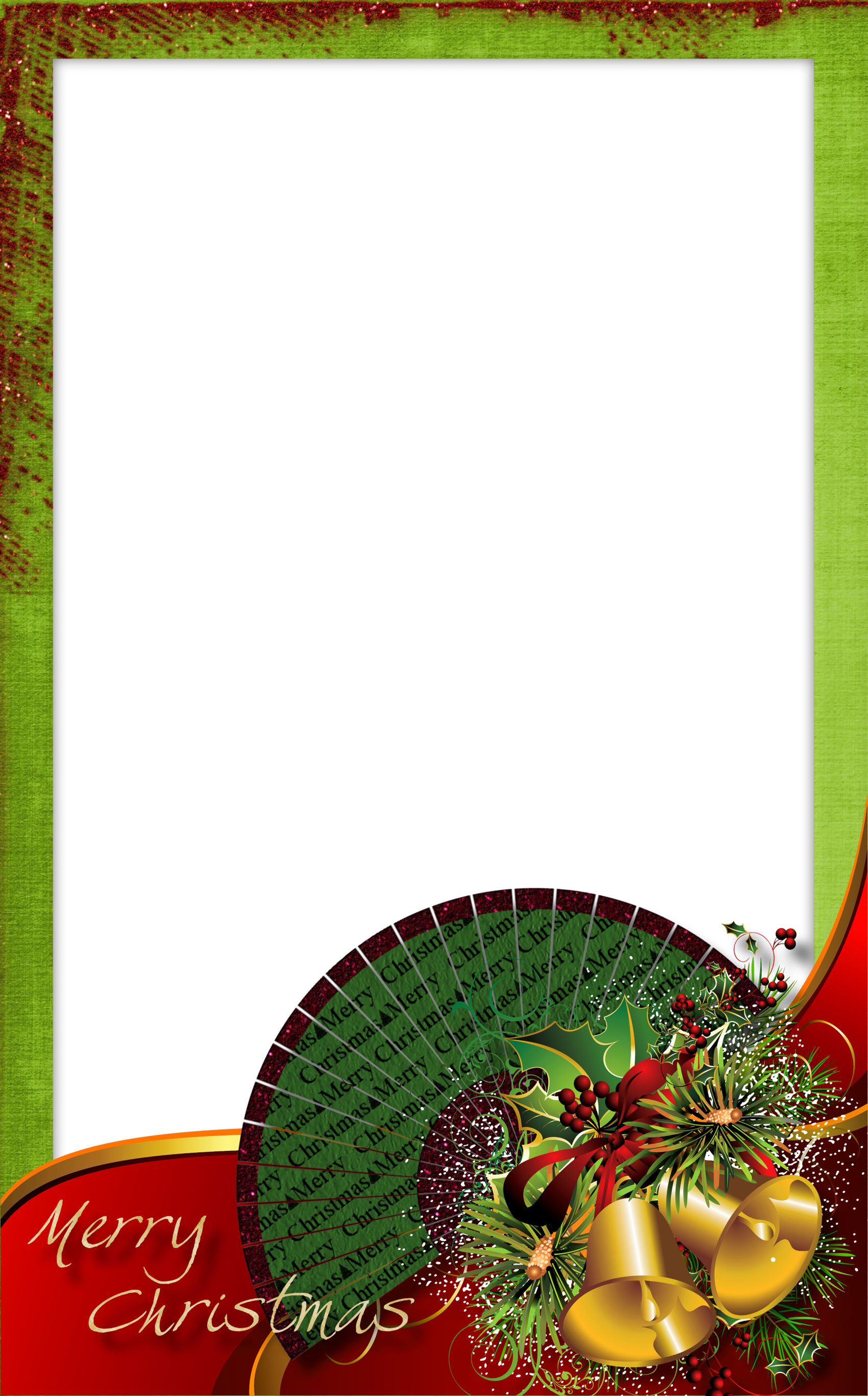 This Holiday Frame: "Green Christmas Transparent PNG Photo Frame with Bells" is part of