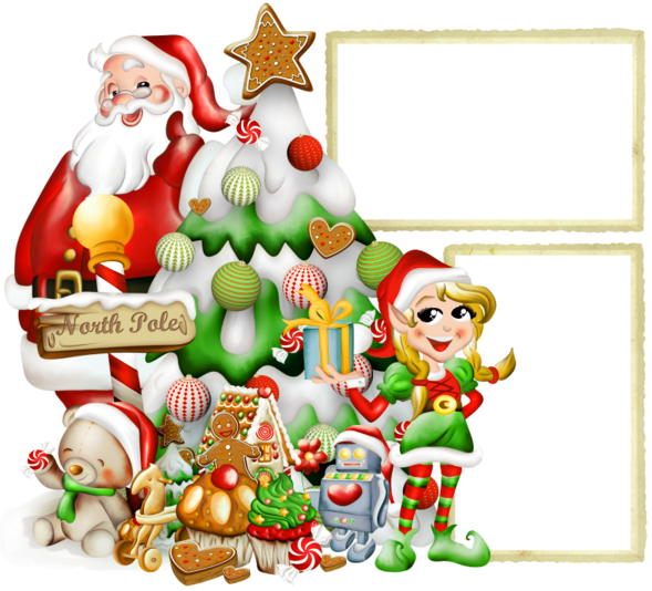 This Holiday Frame: "Transparent Christmas PNG Photo Frame with Elf and Santa Claus" is part of